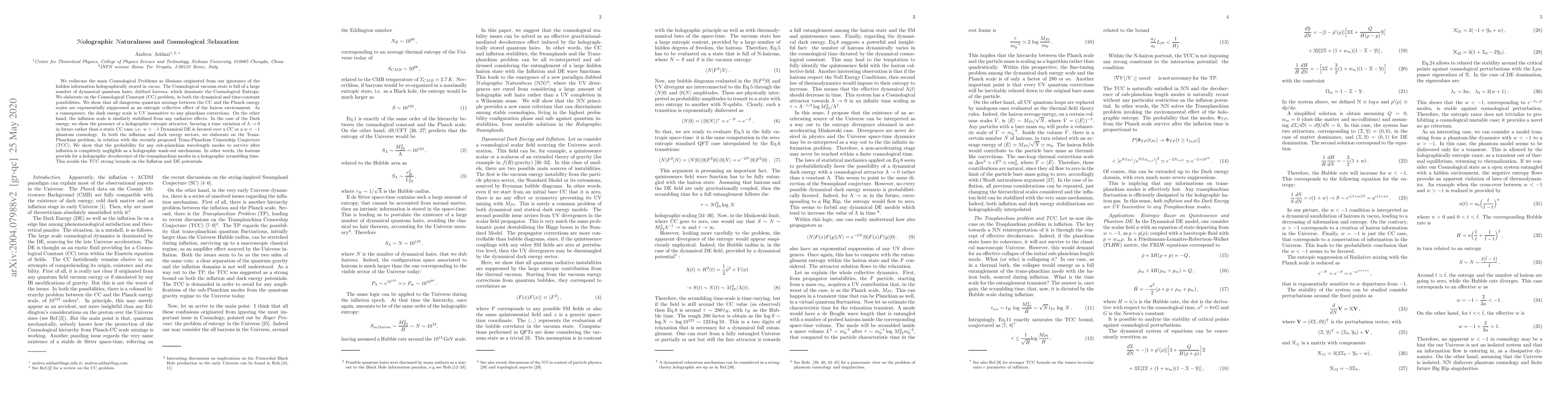 We rediscuss the main Cosmological Problems as illusions originated from our ignorance of the hidden information holographically stored in {\it vacuo}. The Cosmological vacuum state is full of a large number of dynamical quantum hairs, dubbed {\it hairons}, which dominate the Cosmological Entropy. We elaborate on the Cosmological Constant (CC) problem, in both the dynamical and time-constant possibilities. We show that all dangerous quantum mixings between the CC and the Planck energy scales are exponentially suppressed as an entropic collective effect of the hairon environment. As a consequence, the dark energy scale is UV insensitive to any planckian corrections. On the other hand, the inflation scale is similarly stabilized from any radiative effects. In the case of the Dark energy, we show the presence of a holographic entropic attractor, favoring a time variation of $\Lambda\rightarrow 0$ in future rather than a static CC case; i.e. $w>-1$ Dynamical DE is favored over a CC or a $w<-1$ phantom cosmology. In both the inflation and dark energy sectors, we elaborate on the Trans-Planckian problem, in relation with the recently proposed Trans-Planckian Censorship Conjecture (TCC). We show that the probability for any sub-planckian wavelength modes to survive after inflation is completely negligible as a holographic wash-out mechanism. In other words, the hairons provide for a holographic decoherence of the transplanckian modes in a holographic scrambling time. This avoids the TCC strong bounds on the Inflaton and DE potentials.