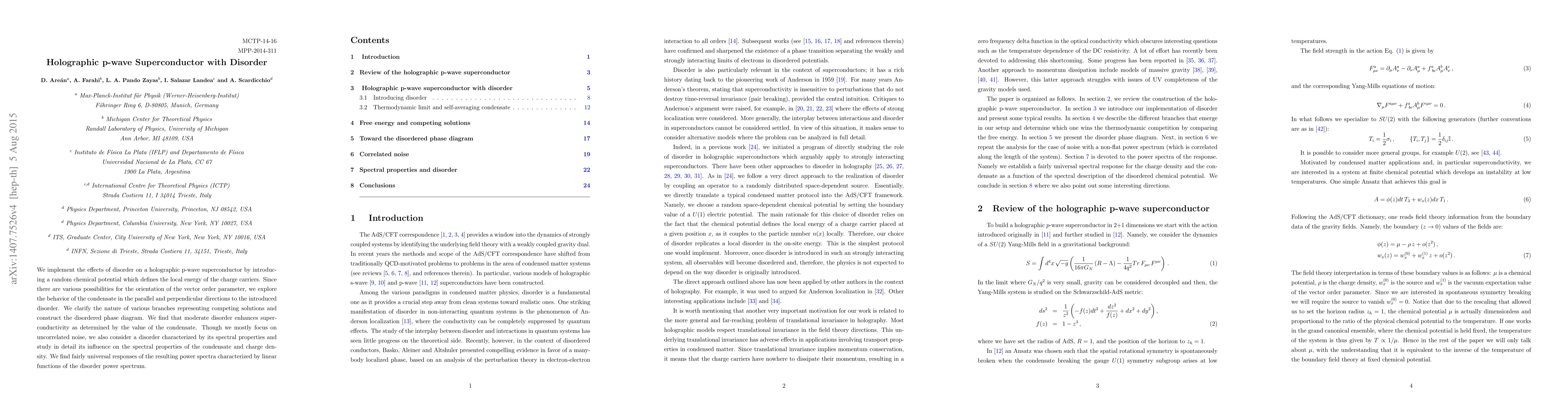 We implement the effects of disorder on a holographic p-wave superconductor by introducing a random chemical potential which defines the local energy of the charge carriers. Since there are various possibilities for the orientation of the vector order parameter, we explore the behavior of the condensate in the parallel and perpendicular directions to the introduced disorder. We clarify the nature of various branches representing competing solutions and construct the disordered phase diagram. We find that moderate disorder enhances superconductivity as determined by the value of the condensate. Though we mostly focus on uncorrelated noise, we also consider a disorder characterized by its spectral properties and study in detail its influence on the spectral properties of the condensate and charge density. We find fairly universal responses of the resulting power spectra characterized by linear functions of the disorder power spectrum.