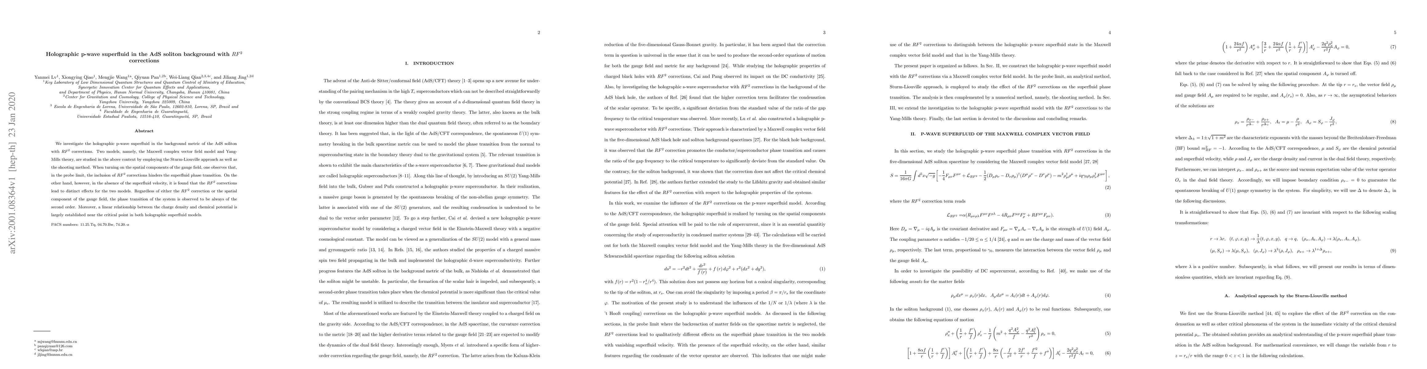 This paper explores holographic p-wave superfluids in an AdS soliton background with $RF^{2}$ corrections, using two models: Maxwell complex vector field and Yang-Mills theory. The study finds that $RF^{2}$ corrections inhibit the superfluid phase transition in the probe limit but have different effects on the two models when the superfluid velocity is absent.