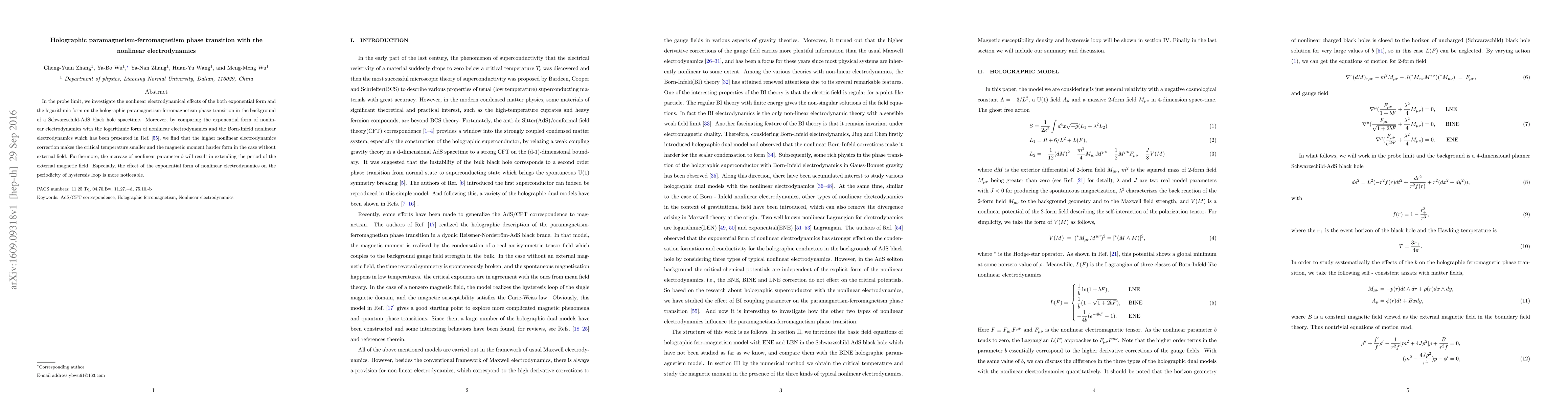 In the probe limit, we investigate the nonlinear electrodynamical effects of the both exponential form and the logarithmic form on the holographic paramagnetism-ferromagnetism phase transition in the background of a Schwarzschild-AdS black hole spacetime. Moreover, by comparing the exponential form of nonlinear electrodynamics with the logarithmic form of nonlinear electrodynamics and the Born-Infeld nonlinear electrodynamics which has been presented in Ref.~\cite{Wu:2016uyj}, we find that the higher nonlinear electrodynamics correction makes the critical temperature smaller and the magnetic moment harder form in the case without external field. Furthermore, the increase of nonlinear parameter b will result in extending the period of the external magnetic field. Especially, the effect of the exponential form of nonlinear electrodynamics on the periodicity of hysteresis loop is more noticeable.