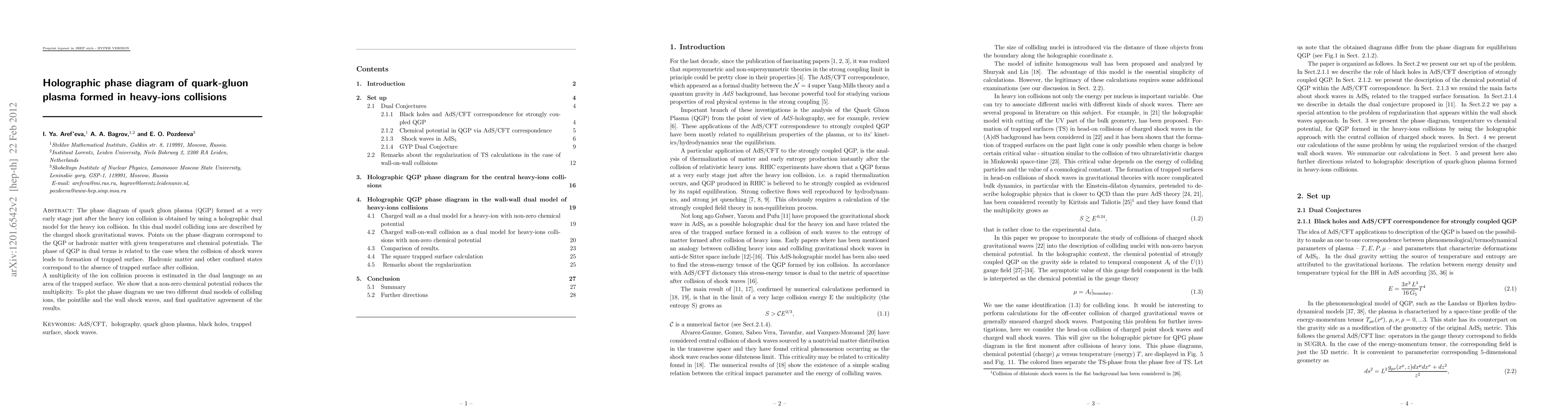 This paper uses a holographic dual model to determine the phase diagram of quark-gluon plasma (QGP) formed in heavy-ion collisions, showing that QGP corresponds to trapped surface formation while hadronic matter does not. The study finds that non-zero chemical potentials reduce collision multiplicity.