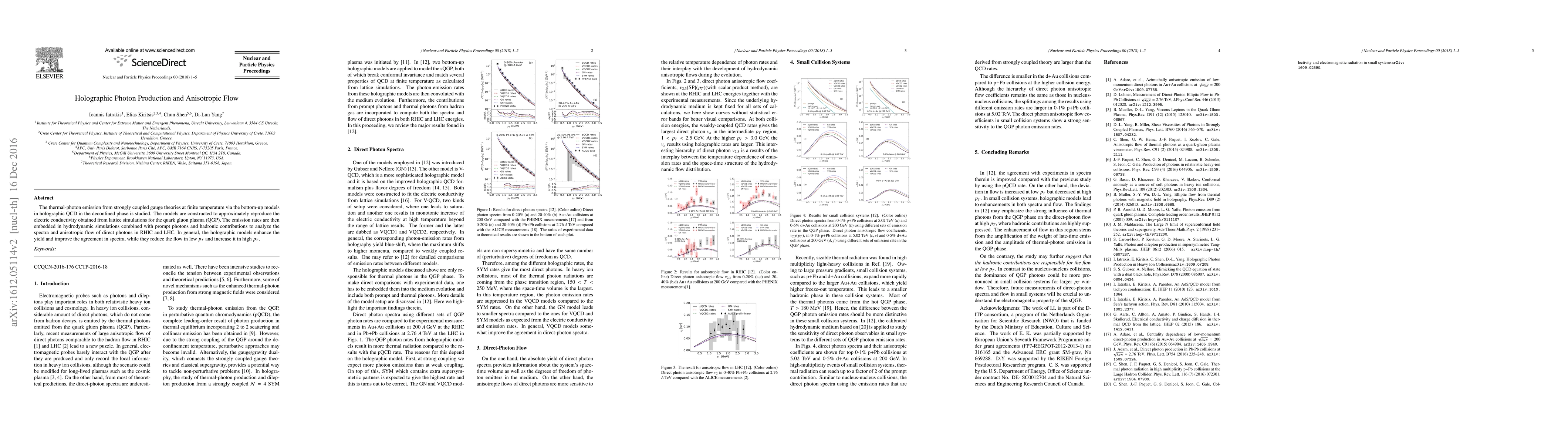The thermal-photon emission from strongly coupled gauge theories at finite temperature via the bottom-up models in holographic QCD in the deconfined phase is studied. The models are constructed to approximately reproduce the electric conductivity obtained from lattice simulations for the quark gluon plasma (QGP). The emission rates are then embedded in hydrodynamic simulations combined with prompt photons and hadronic contributions to analyze the spectra and anisotropic flow of direct photons in RHIC and LHC. In general, the holographic models enhance the yield and improve the agreement in spectra, while they reduce the flow in low $p_T$ and increase it in high $p_T$.