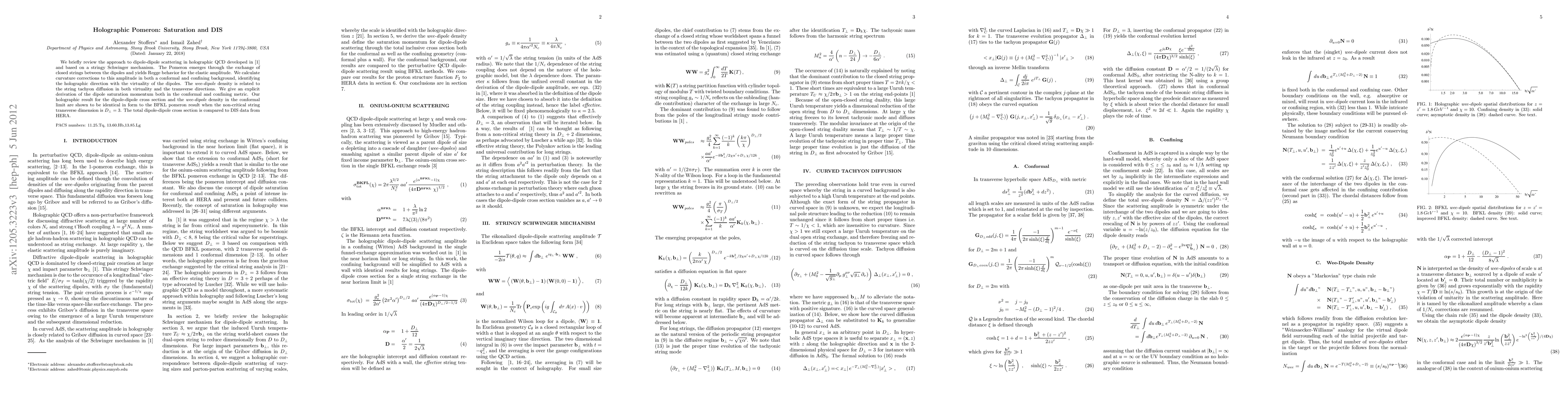 We briefly review the approach to dipole-dipole scattering in holographic QCD developed in ARXIV:1202.0831. The Pomeron is modeled by exchanging closed strings between the dipoles and yields Regge behavior for the elastic amplitude. We calculate curvature corrections to this amplitude in both a conformal and confining background, identifying the holographic direction with the virtuality of the dipoles. The it wee-dipole density is related to the string tachyon diffusion in both virtuality and the transverse directions. We give an explicit derivation of the dipole saturation momentum both in the conformal and confining metric. Our holographic result for the dipole-dipole cross section and the it wee-dipole density in the conformal limit are shown to be identical in form to the BFKL pomeron result when the non-critical string transverse dimension is $D_\perp=3$. The total dipole-dipole cross section is compared to DIS data from HERA.