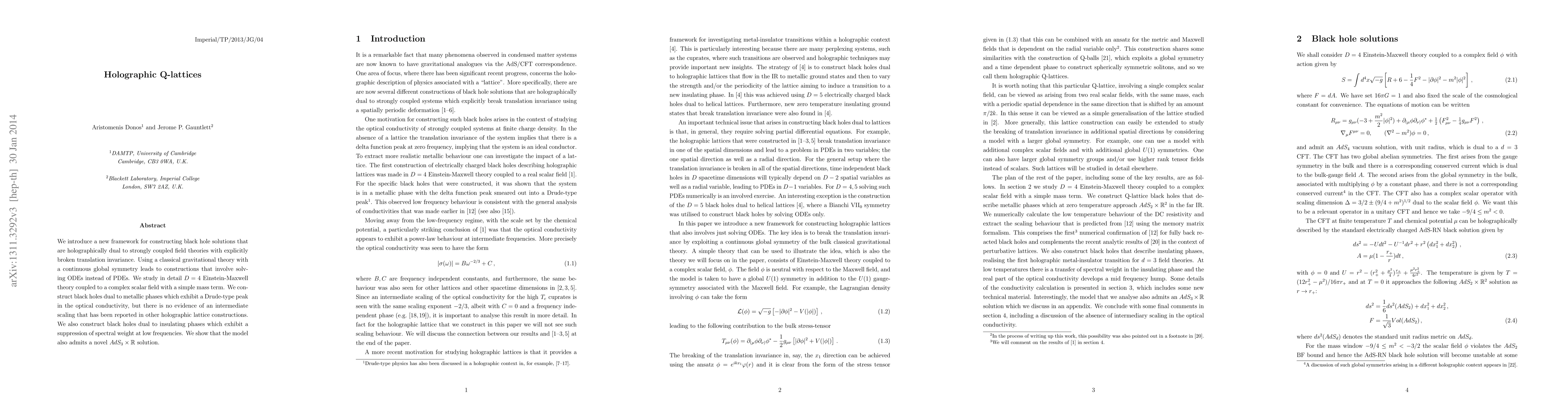 We introduce a new framework for constructing black hole solutions that are holographically dual to strongly coupled field theories with explicitly broken translation invariance. Using a classical gravitational theory with a continuous global symmetry leads to constructions that involve solving ODEs. We study in detail $D=4$ Einstein-Maxwell theory coupled to a complex scalar field with a simple mass term. We construct black holes dual to metallic phases which exhibit a Drude-type peak in the optical conductivity, but there is no evidence of an intermediate scaling that has been reported in other holographic lattice constructions. We also construct black holes dual to insulating phases which exhibit a suppression of spectral weight at low frequencies. We show that the model also admits a novel $AdS_3\times\mathbb{R}$ solution.