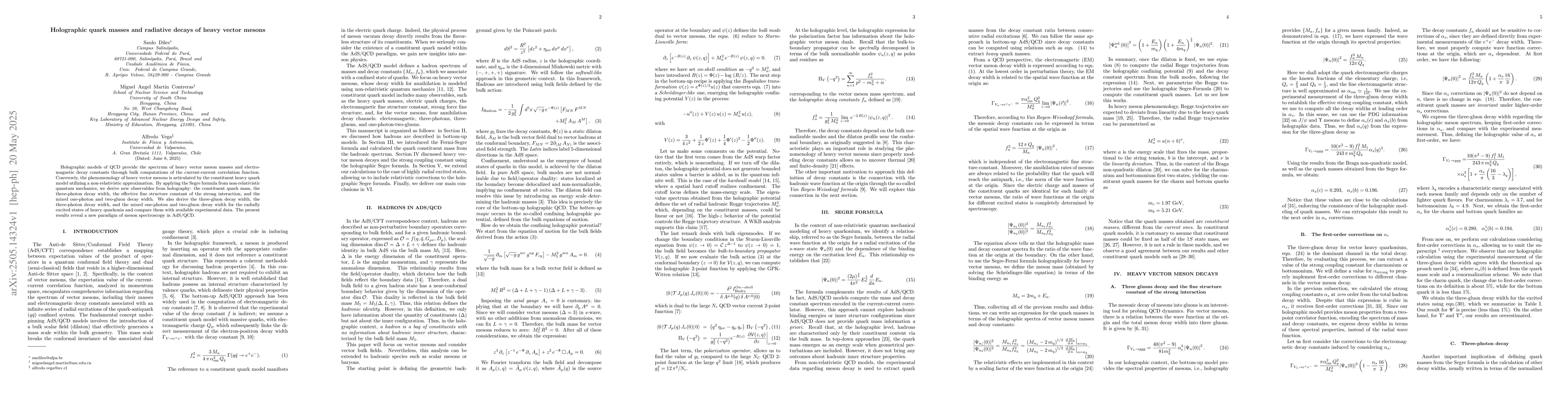 Researchers used holographic models to calculate masses and decay rates of heavy vector mesons, revealing a new paradigm for understanding these particles.