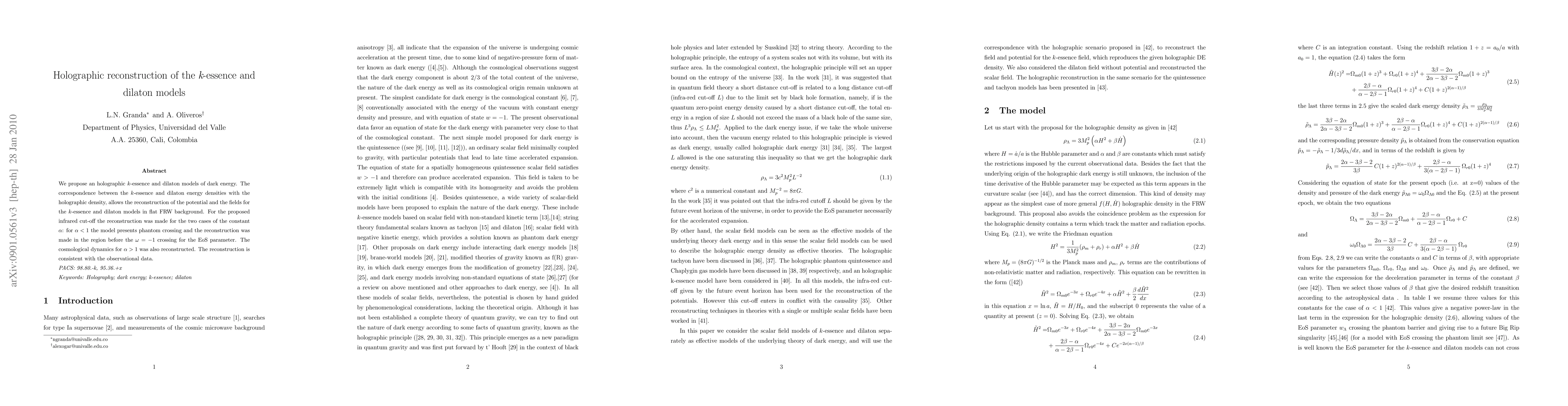 This paper proposes holographic $k$-essence and dilaton models for dark energy, reconstructing the potential and fields using the holographic density. The study examines the cosmological dynamics for different values of $\alpha$, showing consistency with observational data and identifying phantom crossing for $\alpha<1$.