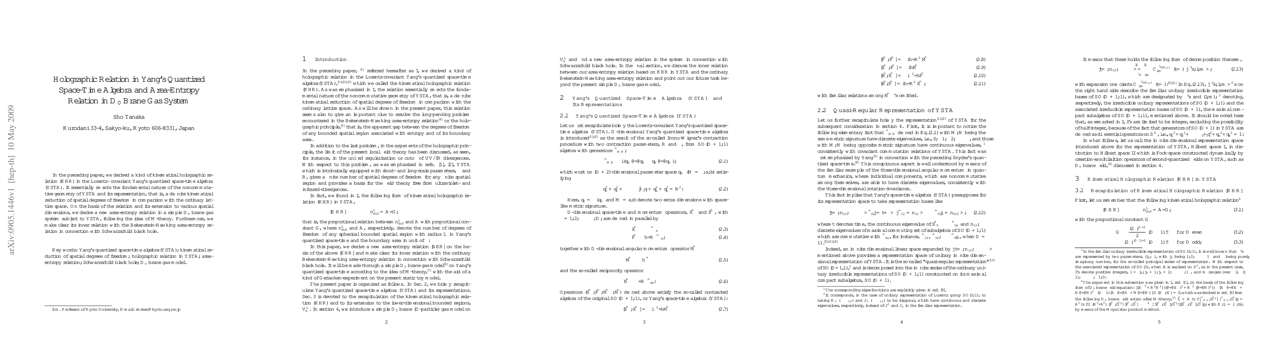 This paper explores a kinematical holographic relation (KHR) derived from Yang's quantized space-time algebra (YSTA) and extends it to derive a new area-entropy relation in a $D_0$ brane gas system. It connects this relation to the Bekenstein-Hawking area-entropy relation for Schwarzschild black holes, highlighting the fundamental nature of noncommutative geometry in YSTA.