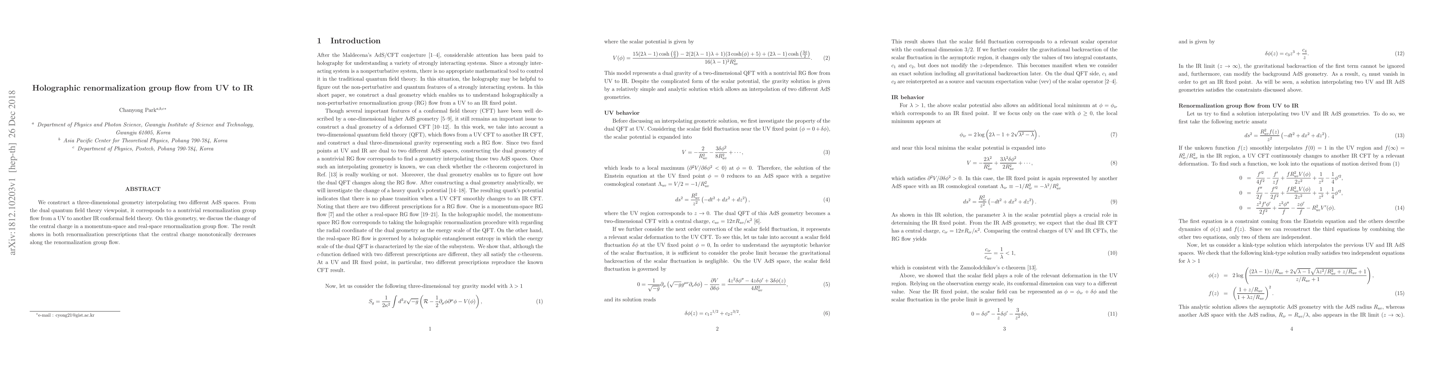 Researchers created a new geometry that shows a decrease in central charge from a UV to an IR conformal field theory, consistent across both momentum-space and real-space renormalization group flows.