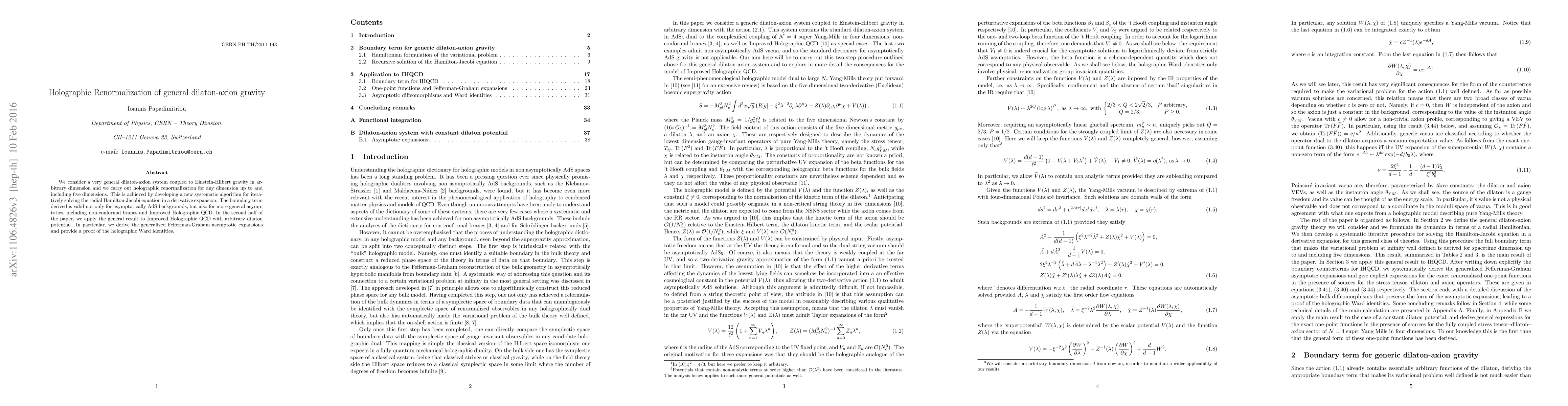 This research presents a novel algorithm for holographic renormalization in general dilaton-axion gravity, applicable up to five dimensions. It derives boundary terms for various asymptotics, proves holographic Ward identities, and applies findings to Improved Holographic QCD.