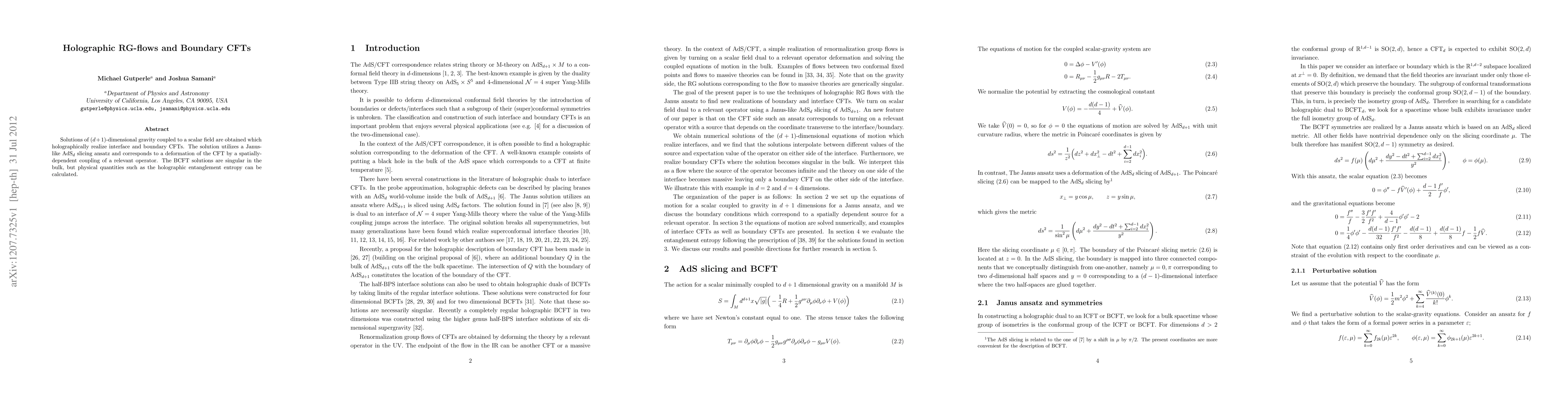 Solutions of $(d+1)$-dimensional gravity coupled to a scalar field are obtained, which holographically realize interface and boundary CFTs. The solution utilizes a Janus-like $\mathrm{AdS}_d$ slicing ansatz and corresponds to a deformation of the CFT by a spatially-dependent coupling of a relevant operator. The BCFT solutions are singular in the bulk, but physical quantities such as the holographic entanglement entropy can be calculated.