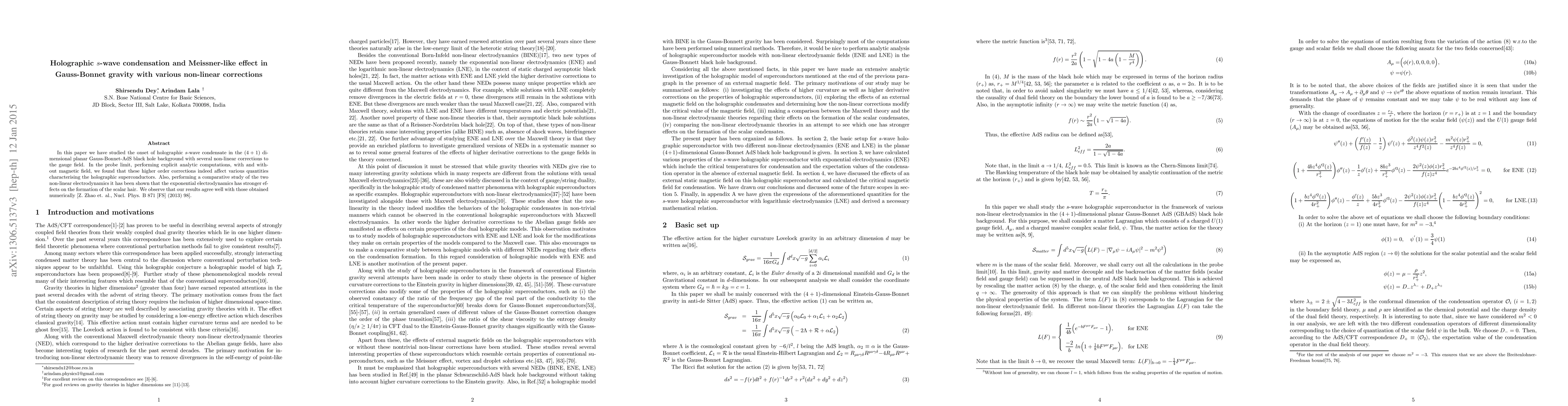 In this paper we have studied the onset of holographic $s$-wave condensate in the $(4+1)$ dimensional planar Gauss-Bonnet-AdS black hole background with several non-linear corrections to the gauge field. In the probe limit, performing explicit analytic computations, with and without magnetic field, we found that these higher order corrections indeed affect various quantities characterising the holographic superconductors. Also, performing a comparative study of the two non-linear electrodynamics it has been shown that the exponential electrodynamics has stronger effects on the formation of the scalar hair. We observe that our results agree well with those obtained numerically [Z. Zhao et. al., Nucl. Phys. B 871 [FS] (2013) 98].