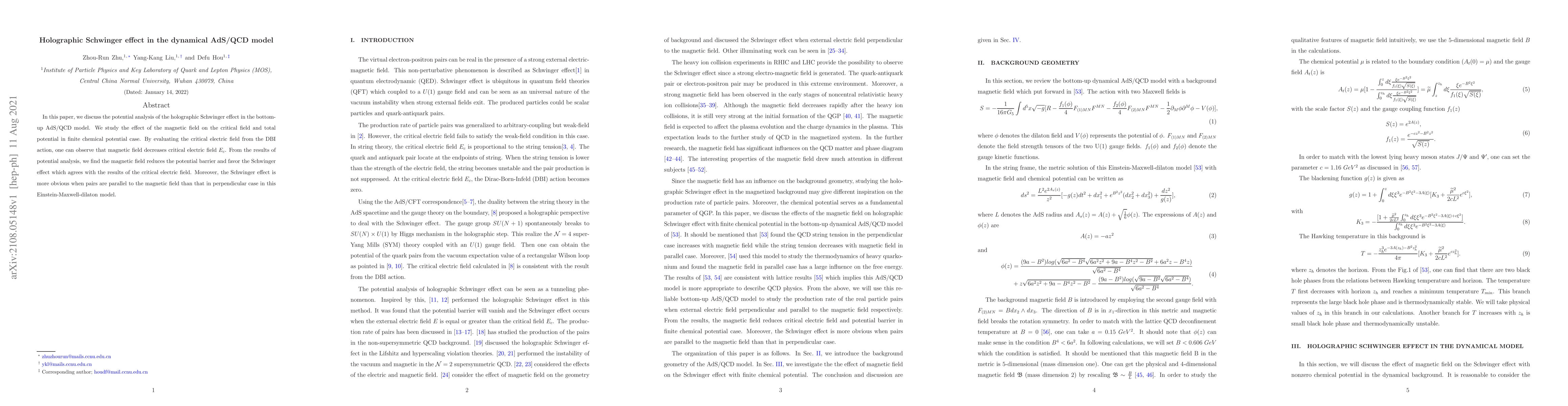 This paper investigates the holographic Schwinger effect within the AdS/QCD model, finding that a magnetic field lowers the critical electric field and reduces the potential barrier, thereby enhancing the Schwinger effect. The effect is more pronounced when particle pairs align parallel to the magnetic field.