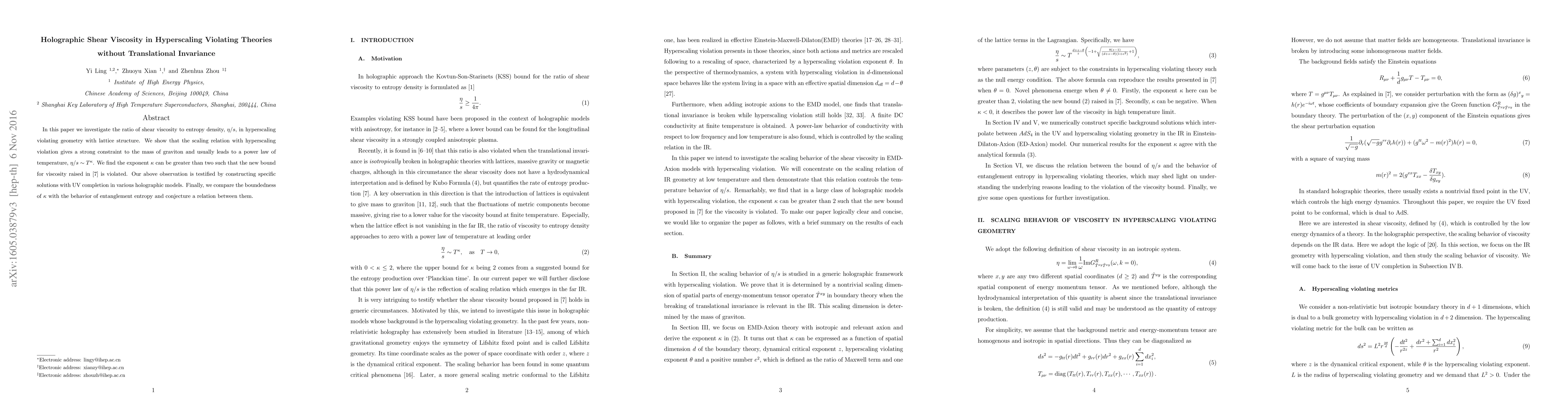 In this paper we investigate the ratio of shear viscosity to entropy density, $\eta/s$, in hyperscaling violating geometry with lattice structure. We show that the scaling relation with hyperscaling violation gives a strong constraint to the mass of graviton and usually leads to a power law of temperature, $\eta/s\sim T^\kappa$. We find the exponent $\kappa$ can be greater than two such that the new bound for viscosity raised in arXiv:1601.02757 is violated. Our above observation is testified by constructing specific solutions with UV completion in various holographic models. Finally, we compare the boundedness of $\kappa$ with the behavior of entanglement entropy and conjecture a relation between them.