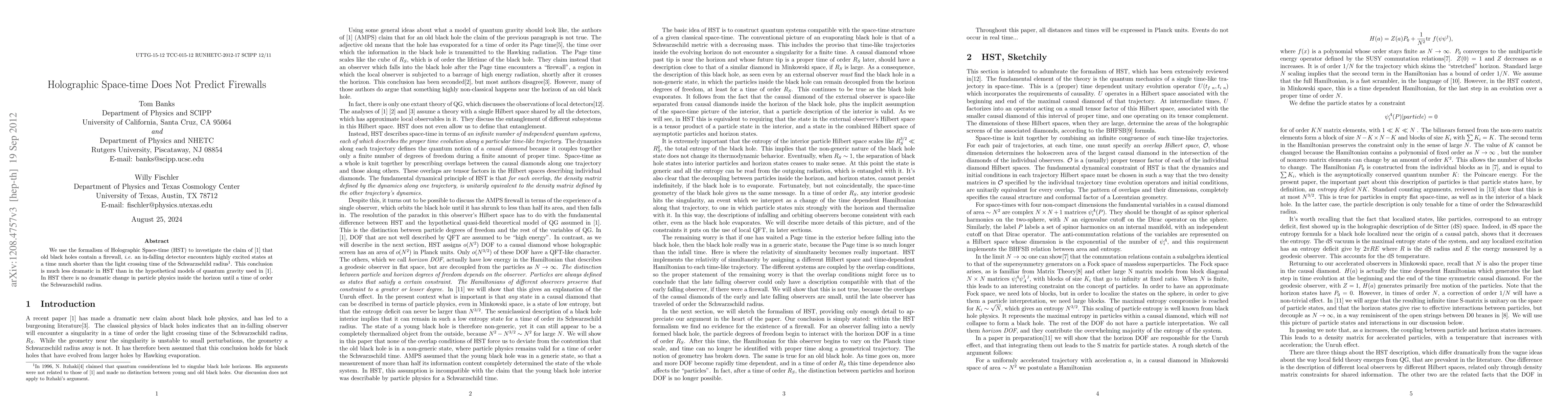 We use the formalism of Holographic Space-time (HST) to investigate the claim of [1] that old black holes contain a firewall, i.e. an in-falling observer encounters highly excited states at a time much shorter than the light crossing time of the Schwarzschild radius. This conclusion is much less dramatic in HST than in the hypothetical models of quantum gravity used in [1]. In HST there is no dramatic change in particle physics inside the horizon until a time of order the Schwarzschild radius.