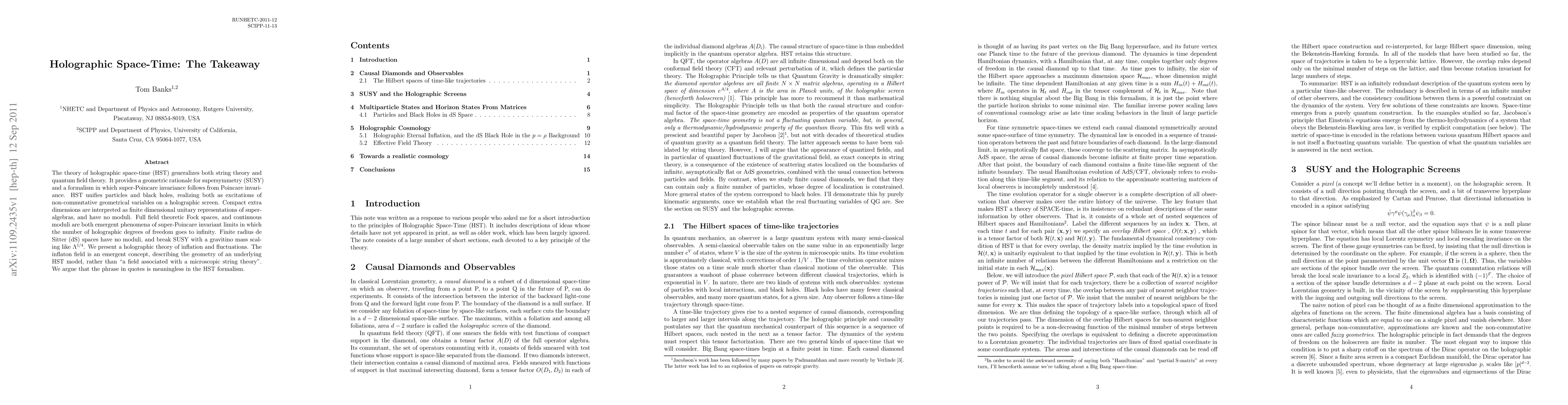 The theory of holographic space-time (HST) generalizes both string theory and quantum field theory. It provides a geometric rationale for supersymmetry (SUSY) and a formalism in which super-Poincare invariance follows from Poincare invariance. HST unifies particles and black holes, realizing both as excitations of non-commutative geometrical variables on a holographic screen. Compact extra dimensions are interpreted as finite dimensional unitary representations of super-algebras, and have no moduli. Full field theoretic Fock spaces, and continuous moduli are both emergent phenomena of super-Poincare invariant limits in which the number of holographic degrees of freedom goes to infinity. Finite radius de Sitter (dS) spaces have no moduli, and break SUSY with a gravitino mass scaling like $\Lambda^{1/4}$. We present a holographic theory of inflation and fluctuations. The inflaton field is an emergent concept, describing the geometry of an underlying HST model, rather than "a field associated with a microscopic string theory". We argue that the phrase in quotes is meaningless in the HST formalism.