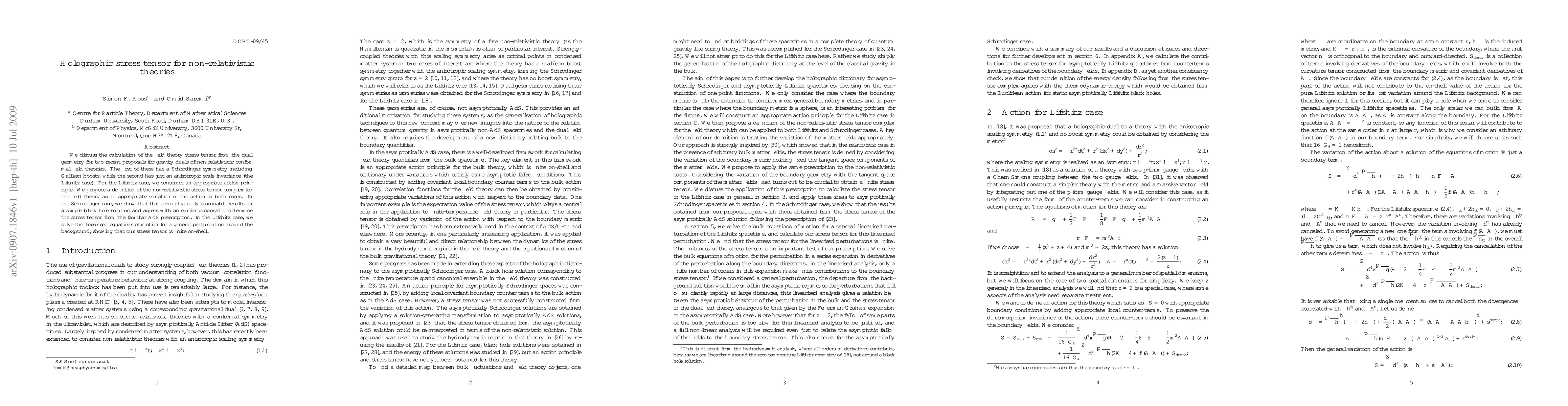 This paper calculates the stress tensor for non-relativistic conformal field theories using holographic duality, proposing definitions for both Schrödinger and Lifshitz symmetries. It validates the proposed stress tensor definitions through black hole solutions and linearized perturbations.