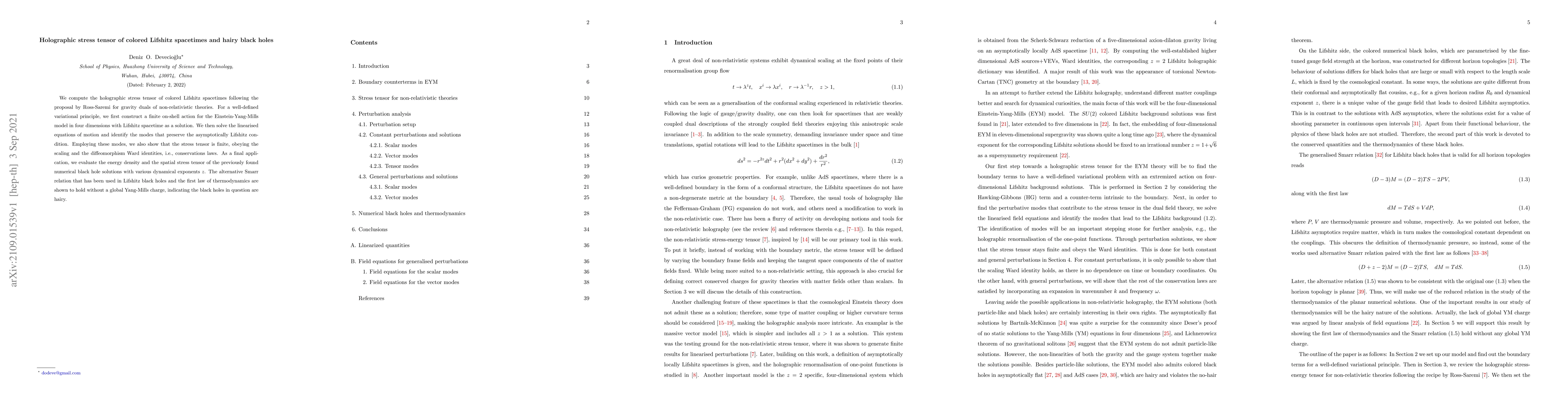 This paper computes the holographic stress tensor for colored Lifshitz spacetimes using the Ross-Saremi proposal, demonstrating finiteness and conservation laws, and evaluates the energy density and spatial stress tensor of hairy black hole solutions with varying dynamical exponents.