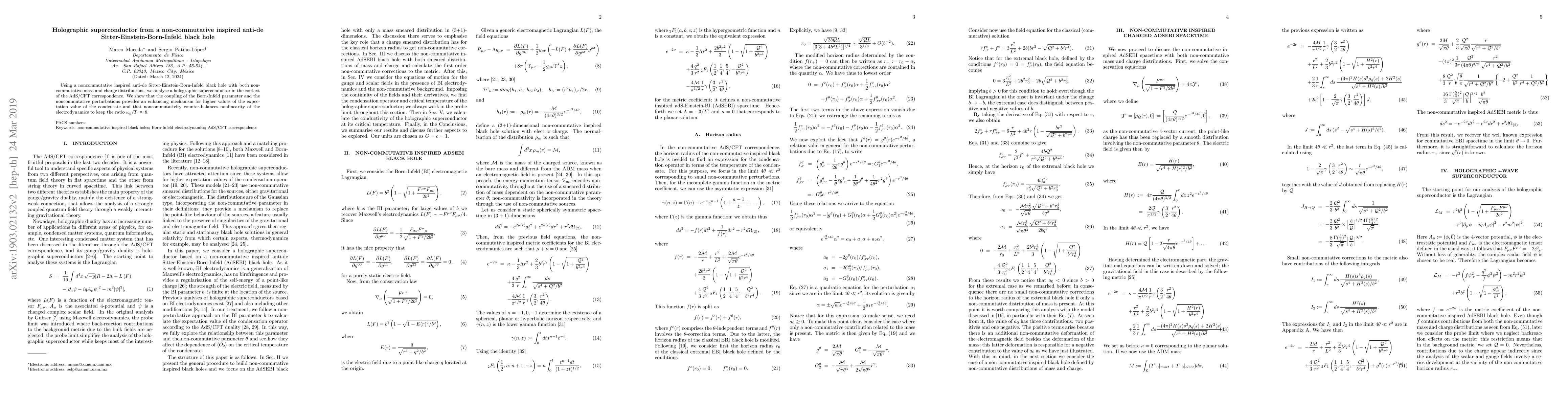 Using a noncommutative inspired anti-de Sitter-Einstein-Born-Infeld black hole with both non-commutative mass and charge distributions, we analyse a holographic superconductor in the context of the AdS/CFT correspondence. We show that the coupling of the Born-Infeld parameter and the noncommutative perturbations provides an enhancing mechanism for higher values of the expectation value of the condensate and that noncommutativity counter-balances nonlinearity of the electrodynamics to keep the ratio $\omega_g/T_c \approx 8$.
