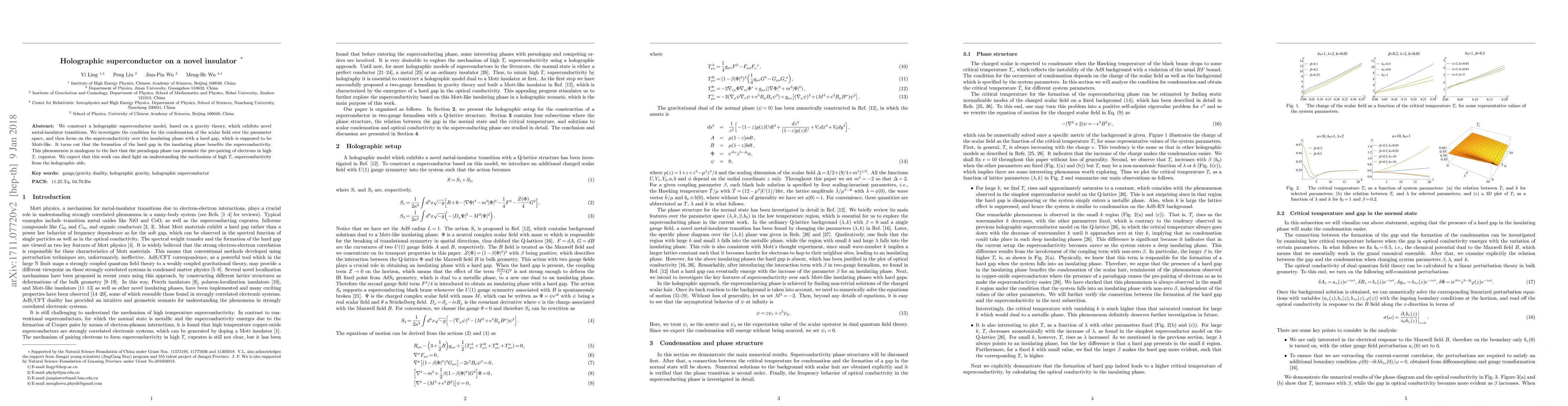 We construct a holographic superconductor model, based on a gravity theory, which exhibits novel metal-insulator transitions. We investigate the condition for the condensation of the scalar field over the parameter space, and then focus on the superconductivity over the insulating phase with a hard gap, which is supposed to be Mott-like. It turns out that the formation of the hard gap in the insulating phase benefits the superconductivity. This phenomenon is analogous to the fact that the pseudogap phase can promote the pre-pairing of electrons in high $T_c$ cuprates. We expect that this work can shed light on understanding the mechanism of high Tc superconductivity from the holographic side.