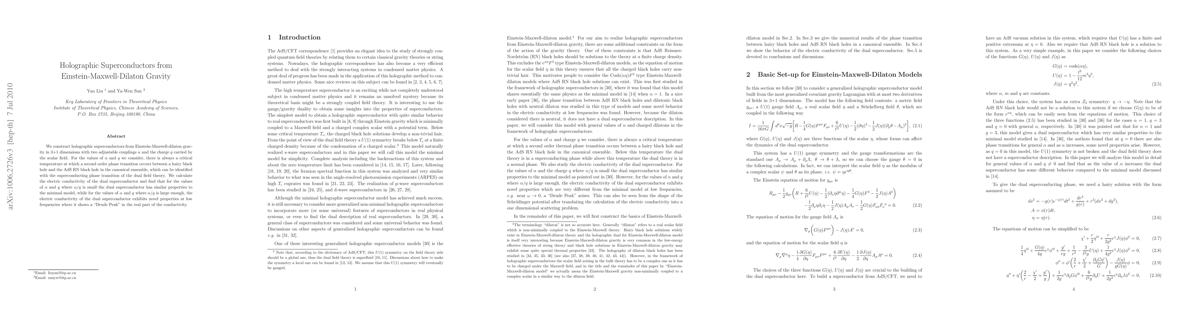 This paper constructs holographic superconductors in Einstein-Maxwell-dilaton gravity, identifying a critical temperature for a phase transition between hairy and AdS RN black holes. The study reveals novel electric conductivity properties, including a "Drude Peak" at low frequencies for certain coupling values.