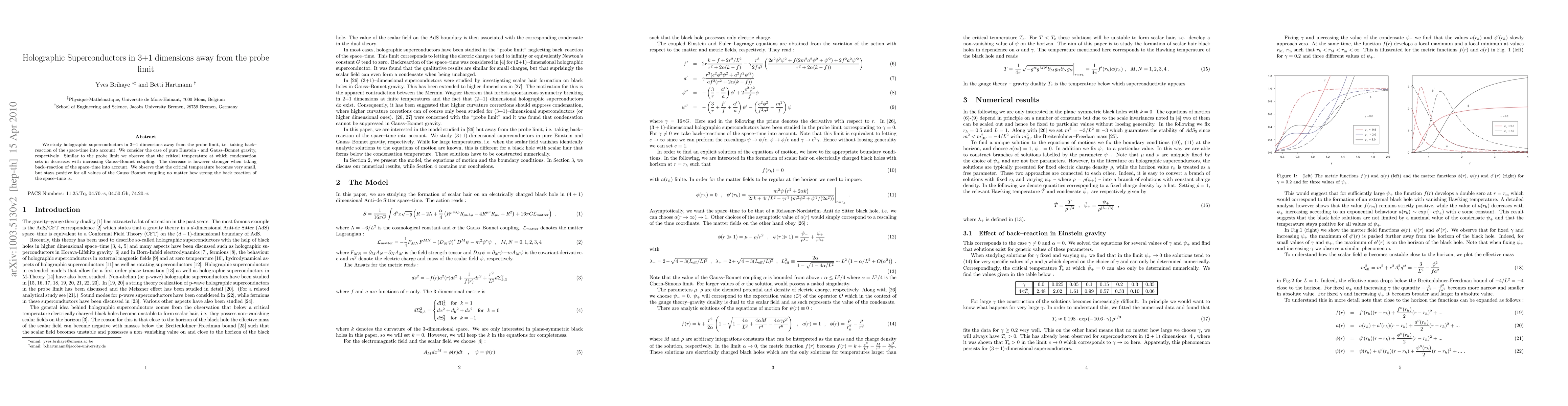 We study holographic superconductors in 3+1 dimensions away from the probe limit, i.e. taking back-reaction of the space-time into account. We consider the case of pure Einstein- and Gauss-Bonnet gravity, respectively. Similar to the probe limit we observe that the critical temperature at which condensation sets in decreases with increasing Gauss-Bonnet coupling. The decrease is however stronger when taking back-reaction of the space-time into account. We observe that the critical temperature becomes very small, but stays positive for all values of the Gauss-Bonnet coupling no matter how strong the back-reaction of the space-time is.