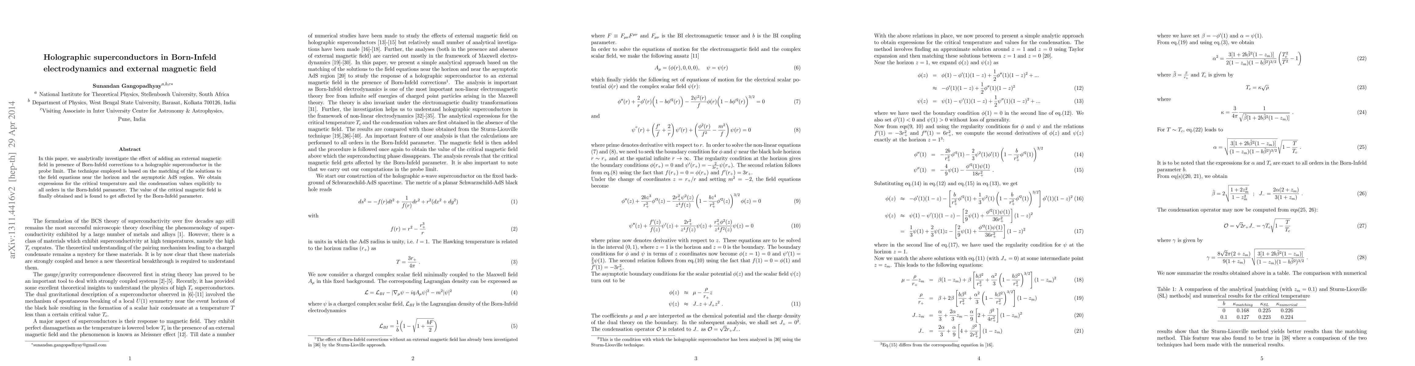 This paper analytically explores how Born-Infeld electrodynamics and an external magnetic field influence holographic superconductors in the probe limit. It derives critical temperature and condensation values, showing that the critical magnetic field is affected by the Born-Infeld parameter.