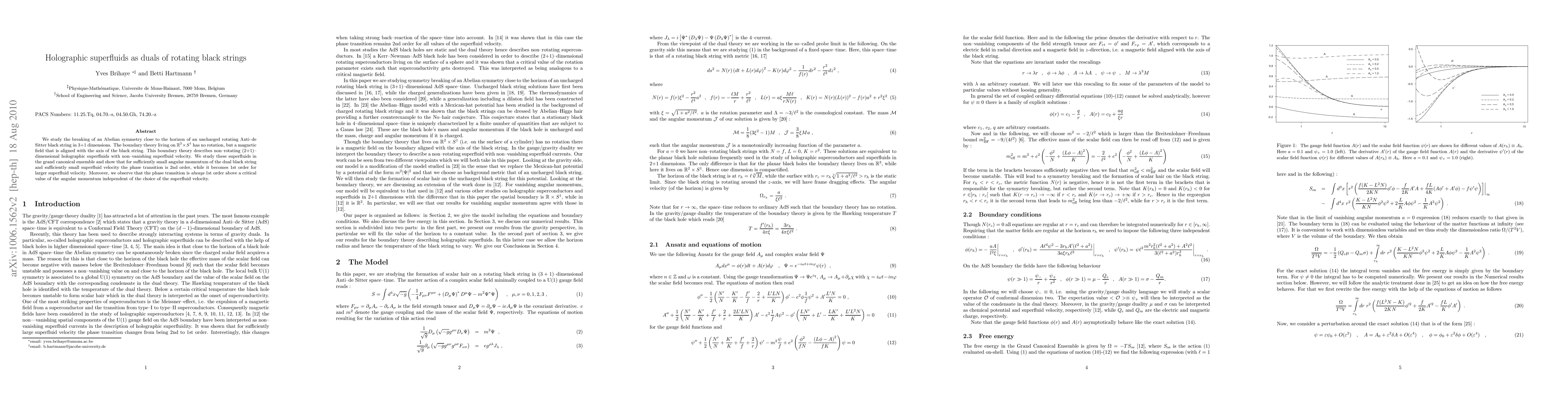Researchers discover that holographic superfluids emerge as duals of rotating black strings under specific conditions, with phase transitions varying between 2nd order and 1st order depending on angular momentum and velocity.
