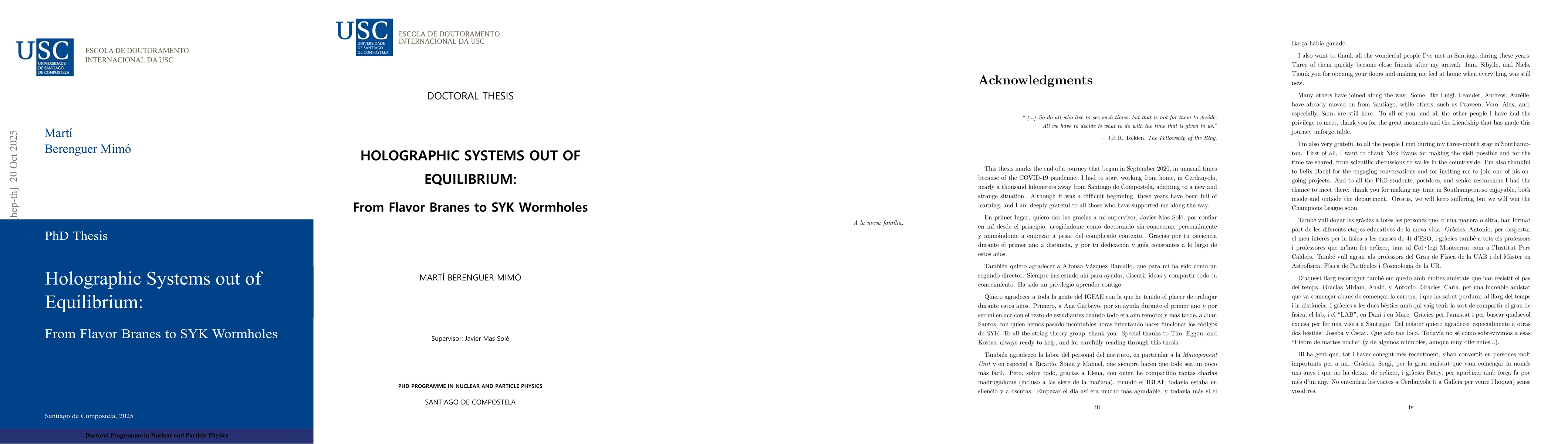 This thesis studies the non-equilibrium dynamics of strongly coupled quantum systems within the framework of the AdS/CFT correspondence, with particular emphasis on periodically driven (Floquet) systems. The first part focuses on top-down holographic constructions based on D3/D5 and D3/D7 brane intersections subjected to time-dependent external fields. In the D3/D5 system at finite temperature, we analyze the response to a rotating electric field and uncover a rich non-equilibrium phase structure containing conductive and insulating phases, vector meson Floquet condensates, and Floquet suppression points. In the D3/D7 setup, we study the effects of helical magnetic fields on chiral symmetry breaking, showing that sufficiently helical magnetc fields can restore chiral symmetry. The second part examines the periodically driven Maldacena-Qi model, a two-site extension of the SYK model dual to a traversable wormhole. We identify resonances that enhance or suppress the wormhole traversability and find evidence that the unstable region of the phase diagram can be dynamically accessed. We use our driving protocols to access this region and compute its Lyapunov exponent. Overall, this thesis advances the use of the holographic techniques to probe non-equilibrium steady states and real-time dynamics in strongly coupled quantum systems.