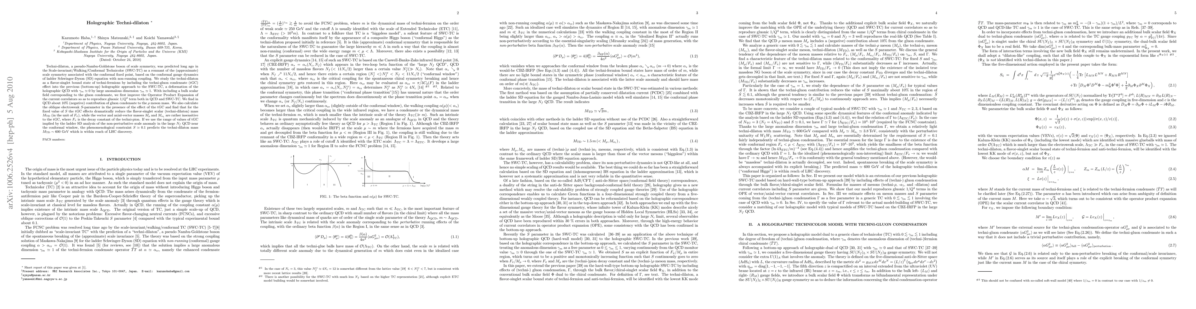 This paper explores the techni-dilaton, a pseudo-Nambu-Goldstone boson from scale symmetry, within a holographic approach incorporating techni-gluon condensate effects. It finds that the techni-dilaton's mass can be significantly reduced by these effects, predicting a mass of around 600 GeV, potentially observable at the LHC.