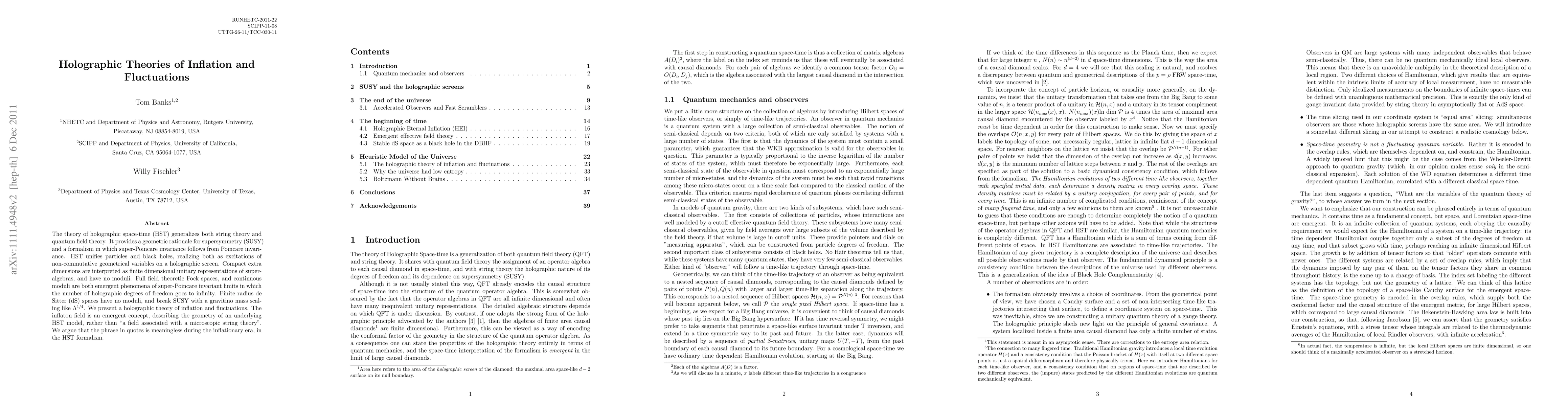 The theory of holographic space-time (HST) generalizes both string theory and quantum field theory. It provides a geometric rationale for supersymmetry (SUSY) and a formalism in which super-Poincare invariance follows from Poincare invariance. HST unifies particles and black holes, realizing both as excitations of non-commutative geometrical variables on a holographic screen. Compact extra dimensions are interpreted as finite dimensional unitary representations of super- algebras, and have no moduli. Full field theoretic Fock spaces, and continuous moduli are both emergent phenomena of super-Poincare invariant limits in which the number of holographic degrees of freedom goes to infinity. Finite radius de Sitter (dS) spaces have no moduli, and break SUSY with a gravitino mass scaling like $\Lambda^{1/4}$. We present a holographic theory of inflation and fluctuations. The inflaton field is an emergent concept, describing the geometry of an underlying HST model, rather than "a field associated with a microscopic string theory". We argue that the phrase in quotes is meaningless in the HST formalism.