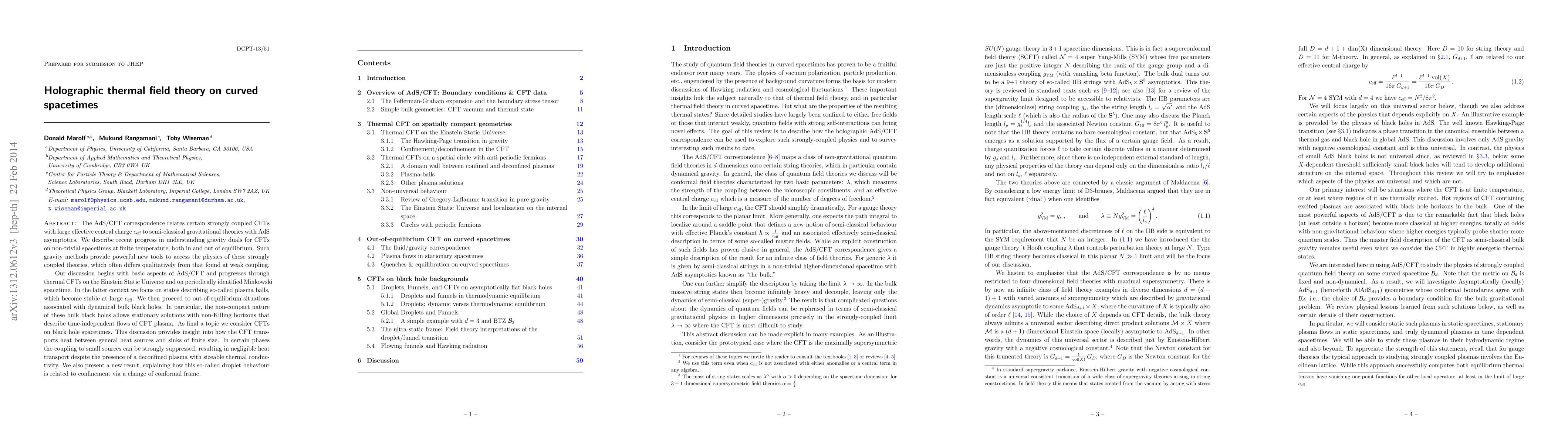 The AdS/CFT correspondence relates certain strongly coupled CFTs with large effective central charge $c_\text{eff}$ to semi-classical gravitational theories with AdS asymptotics. We describe recent progress in understanding gravity duals for CFTs on non-trivial spacetimes at finite temperature, both in and out of equilibrium. Such gravity methods provide powerful new tools to access the physics of these strongly coupled theories, which often differs qualitatively from that found at weak coupling. Our discussion begins with basic aspects of AdS/CFT and progresses through thermal CFTs on the Einstein Static Universe and on periodically identified Minkowski spacetime. In the latter context we focus on states describing so-called plasma balls, which become stable at large $c_\text{eff}$. We then proceed to out-of-equilibrium situations associated with dynamical bulk black holes. In particular, the non-compact nature of these bulk black holes allows stationary solutions with non-Killing horizons that describe time-independent flows of CFT plasma. As final a topic we consider CFTs on black hole spacetimes. This discussion provides insight into how the CFT transports heat between general heat sources and sinks of finite size. In certain phases the coupling to small sources can be strongly suppressed, resulting in negligible heat transport despite the presence of a deconfined plasma with sizeable thermal conductivity. We also present a new result, explaining how this so-called droplet behaviour is related to confinement via a change of conformal frame.