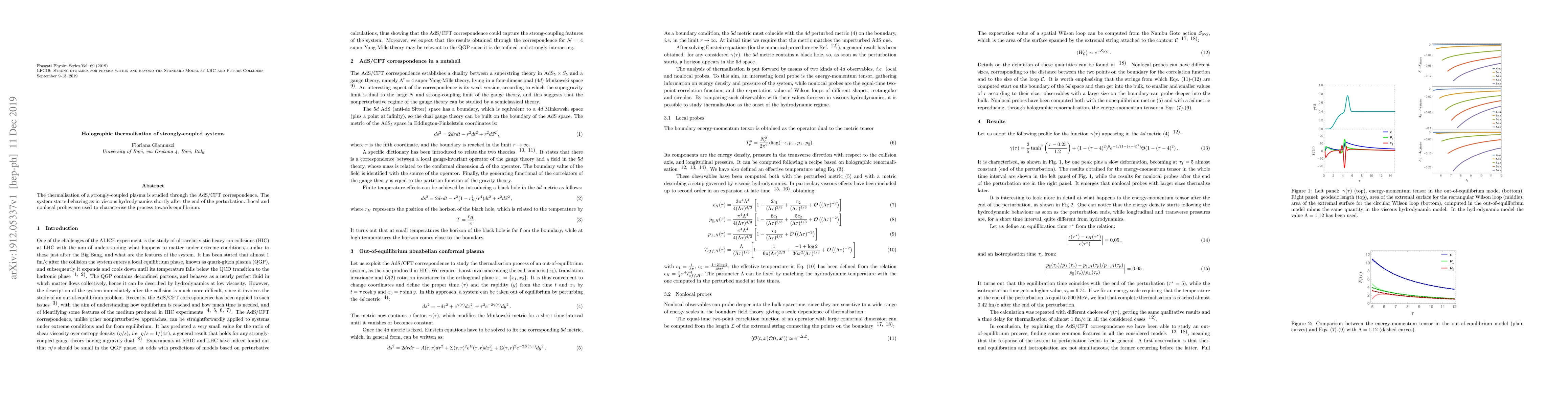 The thermalisation of a strongly-coupled plasma is studied through the AdS/CFT correspondence. The system starts behaving as in viscous hydrodynamics shortly after the end of the perturbation. Local and nonlocal probes are used to characterise the process towards equilibrium.