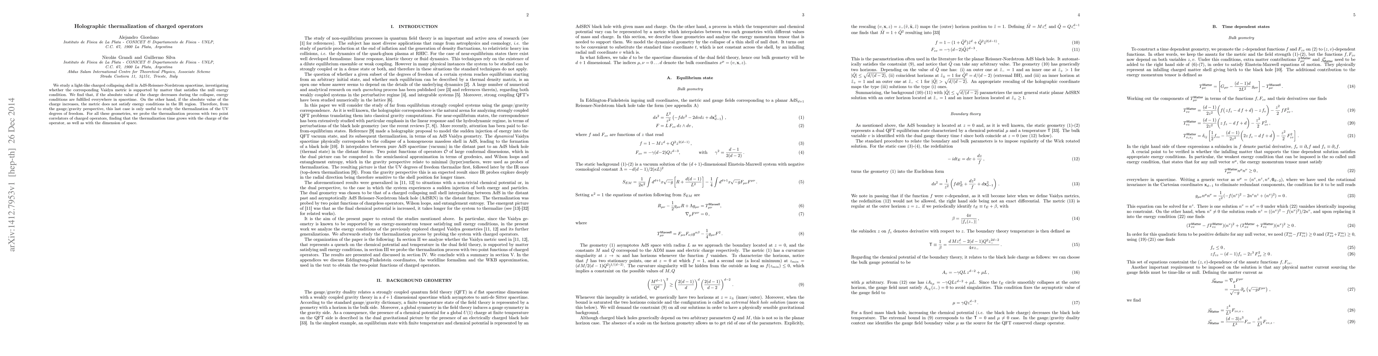 Researchers studied holographic thermalization in AdS-Reissner-Nordstrom spacetime, finding that energy conditions are met when charge decreases, but not when it increases; the thermalization time grows with operator charge and dimension of space.