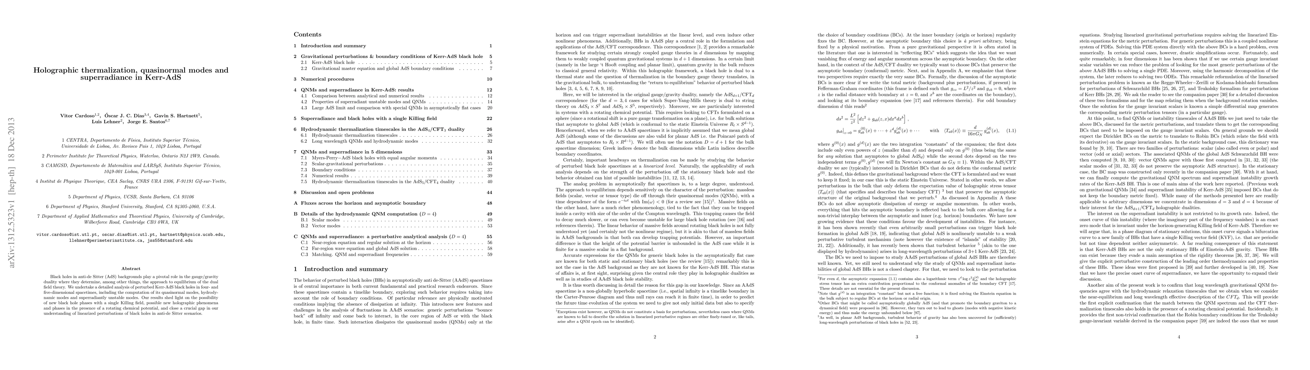 Black holes in anti-de Sitter (AdS) backgrounds play a pivotal role in the gauge/gravity duality where they determine, among other things, the approach to equilibrium of the dual field theory. We undertake a detailed analysis of perturbed Kerr-AdS black holes in four- and five-dimensional spacetimes, including the computation of its quasinormal modes, hydrodynamic modes and superradiantly unstable modes. Our results shed light on the possibility of new black hole phases with a single Killing field, possible new holographic phenomena and phases in the presence of a rotating chemical potential, and close a crucial gap in our understanding of linearized perturbations of black holes in anti-de Sitter scenarios.