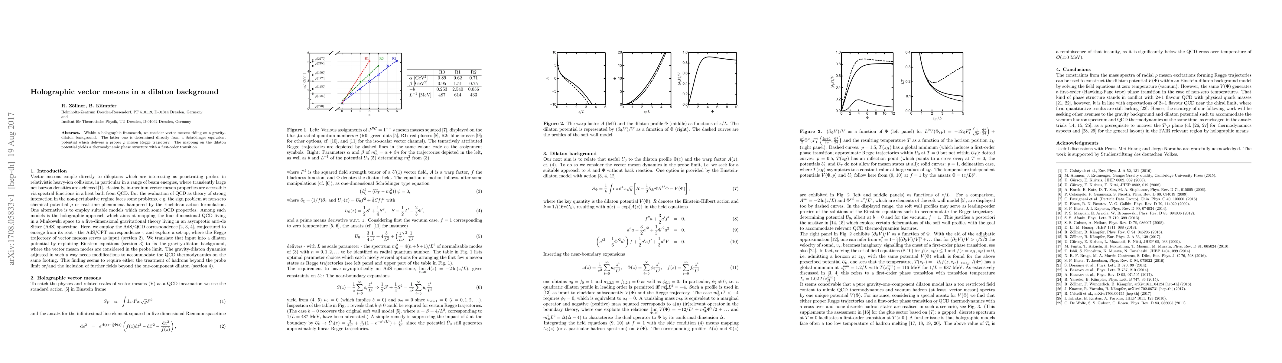 Within a holographic framework, we consider vector mesons riding on a gravity-dilaton background. The latter one is determined directly from a Schr\"odinger equivalent potential which delivers a proper $\rho$ meson Regge trajectory. The mapping on the dilaton potential yields a thermodynamic phase structure with a first-order transition.