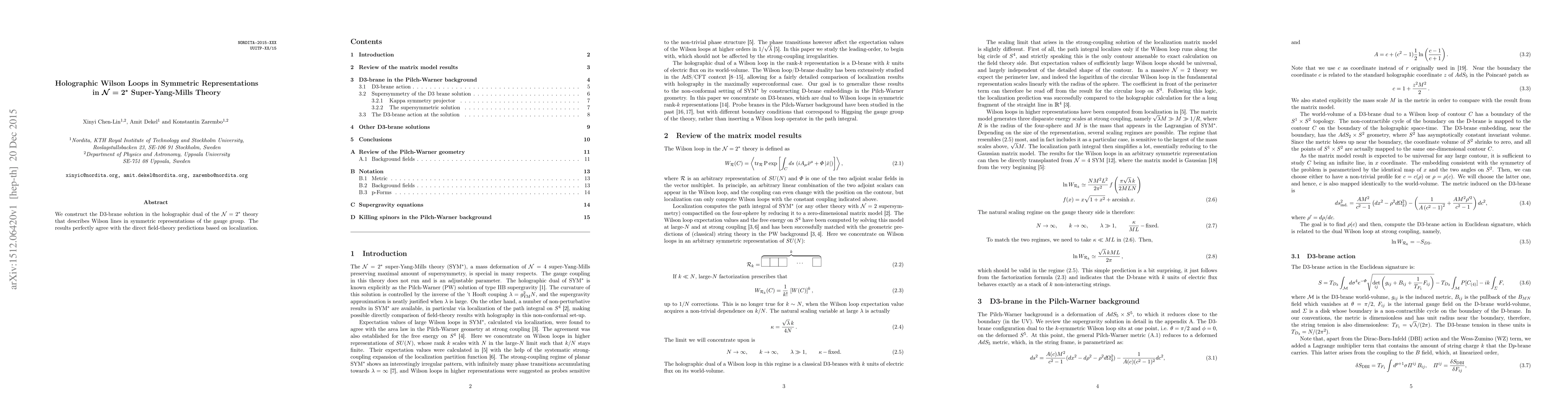 Summary: The paper constructs a D3-brane solution in the holographic dual of N = 2* super-Yang-Mills theory to describe Wilson loops in symmetric representations, confirming field-theory predictions via localization techniques.