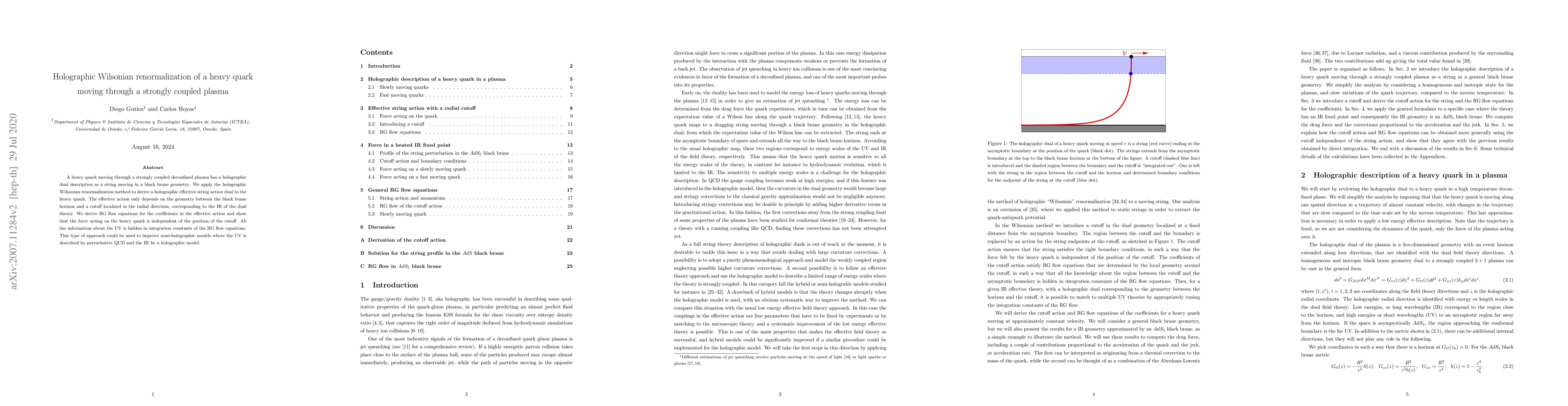 This paper applies holographic Wilsonian renormalization to a heavy quark in a strongly coupled plasma, showing its dual description as a string in a black brane geometry. The derived effective string action depends only on the geometry near the black brane horizon, indicating that UV details are encapsulated in integration constants, while the force on the quark is cutoff-independent.
