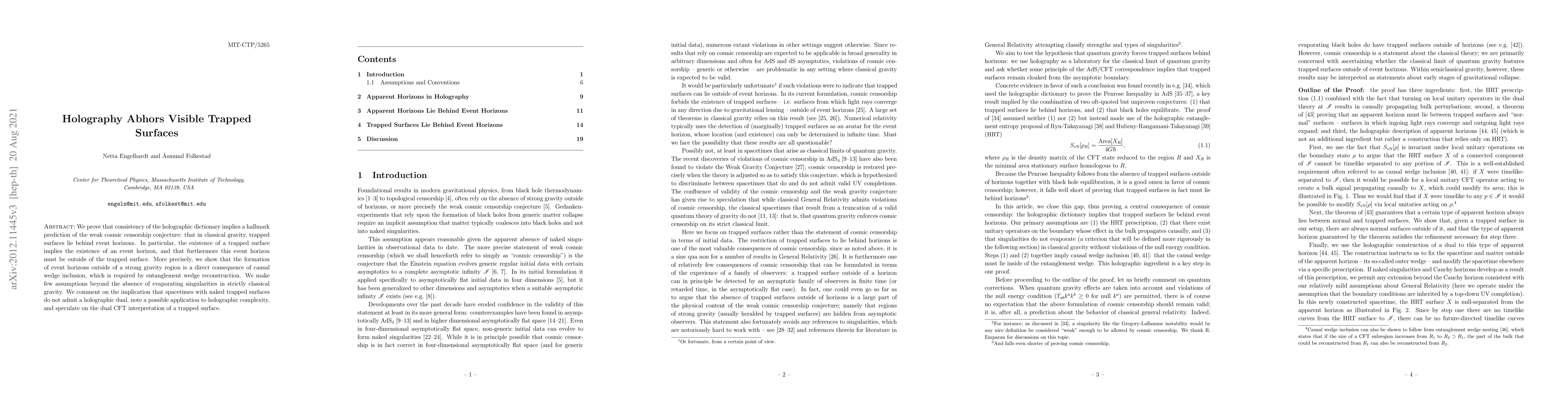 We prove that consistency of the holographic dictionary implies a hallmark prediction of the weak cosmic censorship conjecture: that in classical gravity, trapped surfaces lie behind event horizons. In particular, the existence of a trapped surface implies the existence of an event horizon, and that furthermore this event horizon must be outside of the trapped surface. More precisely, we show that the formation of event horizons outside of a strong gravity region is a direct consequence of causal wedge inclusion, which is required by entanglement wedge reconstruction. We make few assumptions beyond the absence of evaporating singularities in strictly classical gravity. We comment on the implication that spacetimes with naked trapped surfaces do not admit a holographic dual, note a possible application to holographic complexity, and speculate on the dual CFT interpretation of a trapped surface.