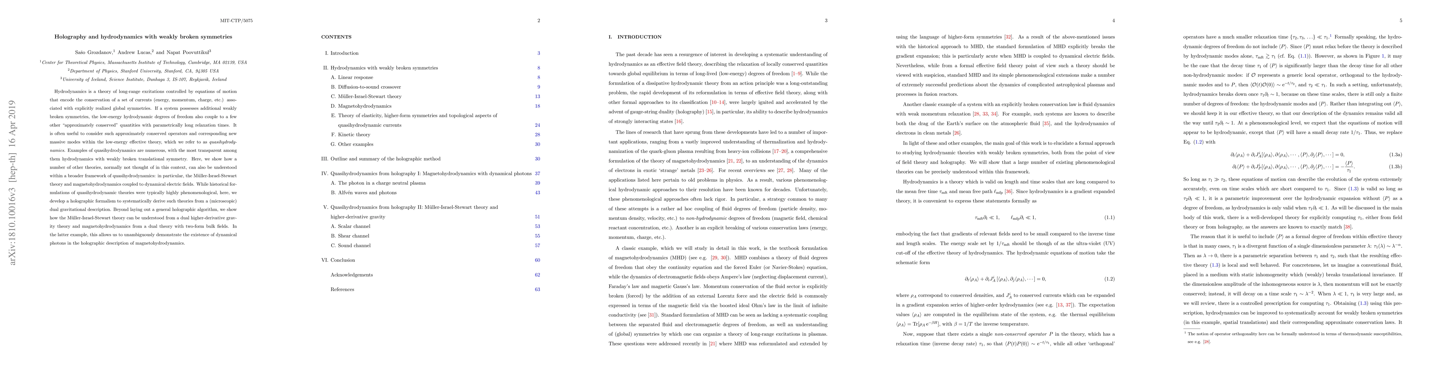 Hydrodynamics is a theory of long-range excitations controlled by equations of motion that encode the conservation of a set of currents (energy, momentum, charge, etc.) associated with explicitly realized global symmetries. If a system possesses additional weakly broken symmetries, the low-energy hydrodynamic degrees of freedom also couple to a few other "approximately conserved" quantities with parametrically long relaxation times. It is often useful to consider such approximately conserved operators and corresponding new massive modes within the low-energy effective theory, which we refer to as quasihydrodynamics. Examples of quasihydrodynamics are numerous, with the most transparent among them hydrodynamics with weakly broken translational symmetry. Here, we show how a number of other theories, normally not thought of in this context, can also be understood within a broader framework of quasihydrodynamics: in particular, the M\"uller-Israel-Stewart theory and magnetohydrodynamics coupled to dynamical electric fields. While historical formulations of quasihydrodynamic theories were typically highly phenomenological, here, we develop a holographic formalism to systematically derive such theories from a (microscopic) dual gravitational description. Beyond laying out a general holographic algorithm, we show how the M\"uller-Israel-Stewart theory can be understood from a dual higher-derivative gravity theory and magnetohydrodynamics from a dual theory with two-form bulk fields. In the latter example, this allows us to unambiguously demonstrate the existence of dynamical photons in the holographic description of magnetohydrodynamics.
