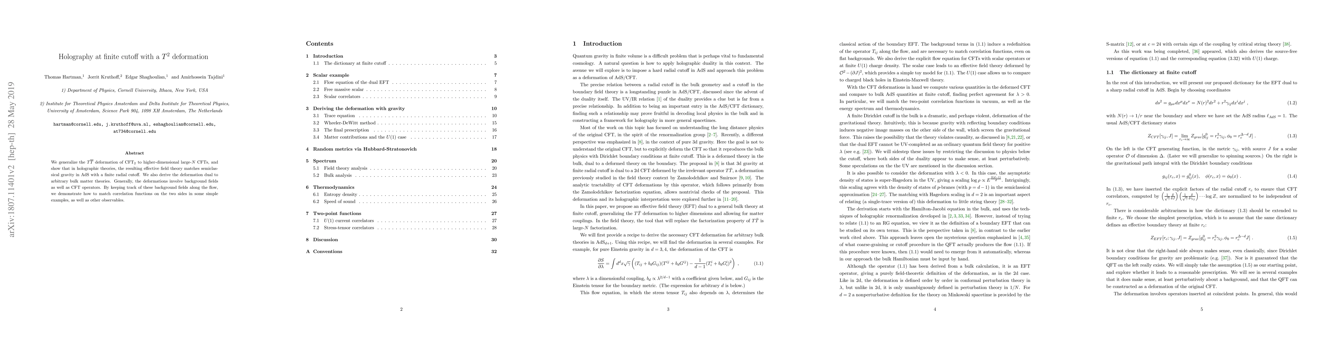 We generalize the $T\overline{T}$ deformation of CFT$_2$ to higher-dimensional large-$N$ CFTs, and show that in holographic theories, the resulting effective field theory matches semiclassical gravity in AdS with a finite radial cutoff. We also derive the deformation dual to arbitrary bulk matter theories. Generally, the deformations involve background fields as well as CFT operators. By keeping track of these background fields along the flow, we demonstrate how to match correlation functions on the two sides in some simple examples, as well as other observables.