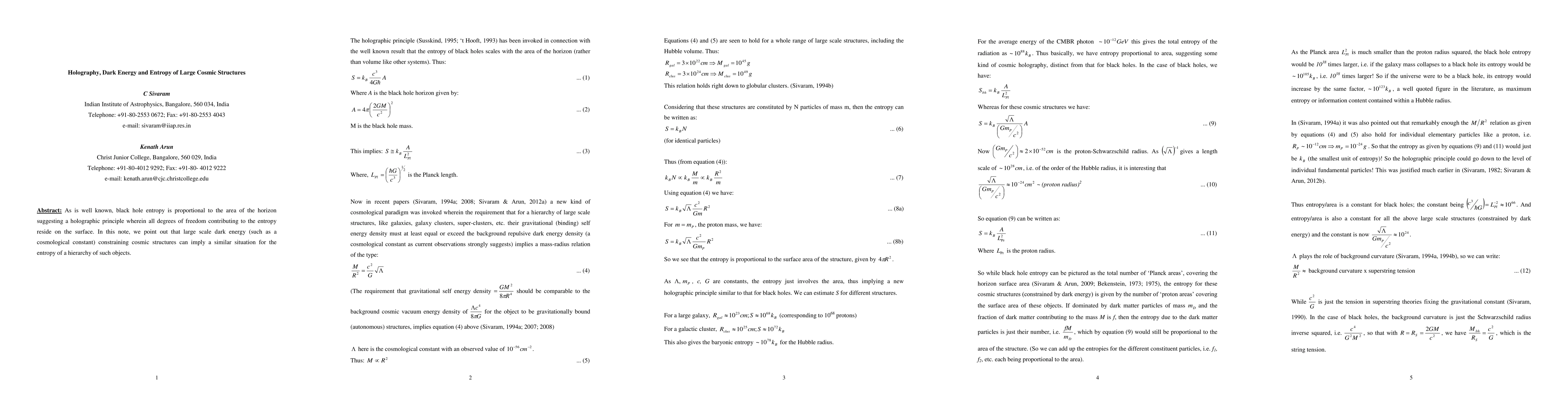 This paper explores how dark energy affects the entropy of large cosmic structures, suggesting a holographic principle similar to that which governs black hole entropy.