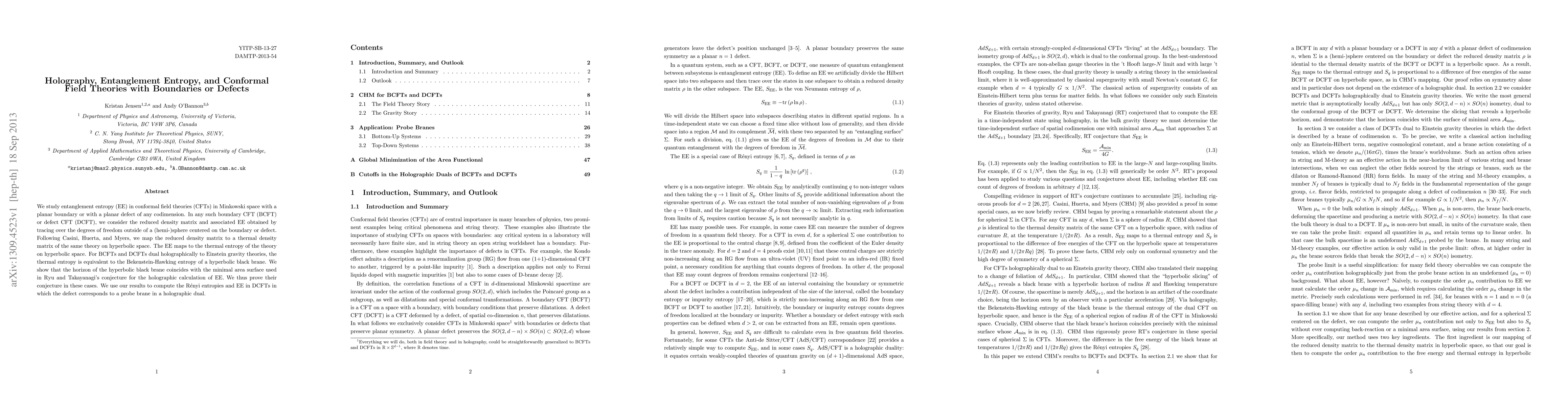 This paper explores the relationship between holography, entanglement entropy, and conformal field theories with boundaries or defects, making connections to Einstein gravity theories and proving a key conjecture in these cases.