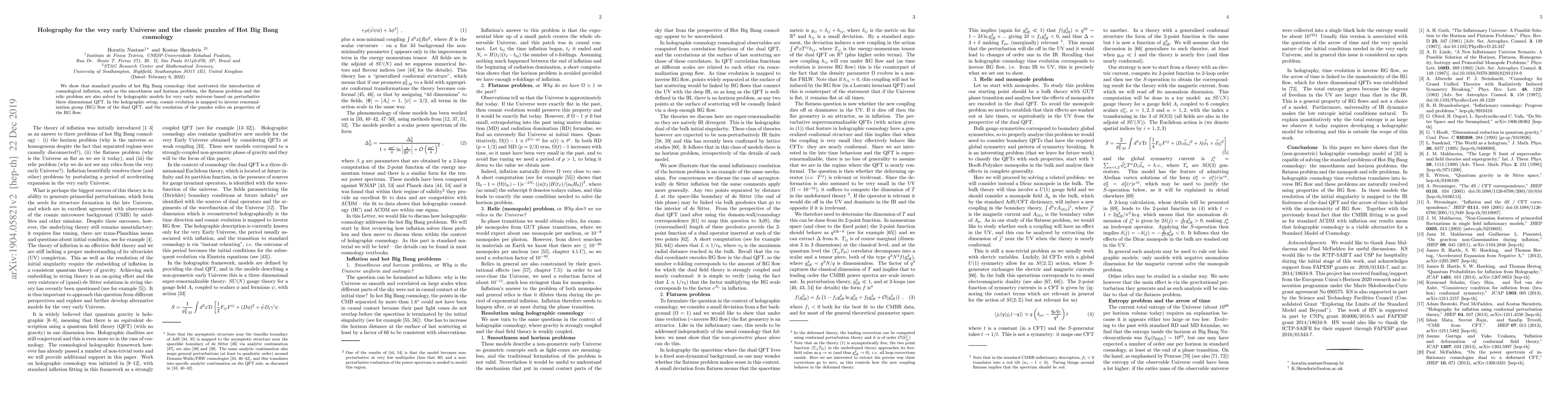 This paper demonstrates that holographic models based on perturbative three-dimensional quantum field theory resolve standard cosmological puzzles like the smoothness, horizon, flatness, and relic problems traditionally addressed by inflation. The resolution hinges on the properties of the inverse renormalization group flow in the dual quantum field theory.