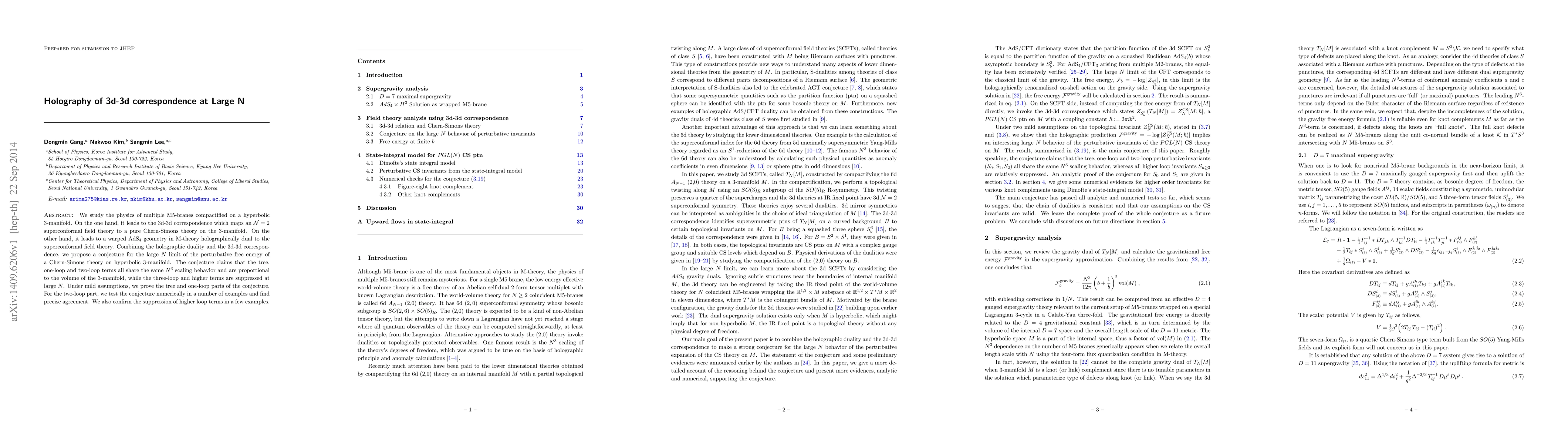 Researchers propose a conjecture for the large N limit of Chern-Simons theory on hyperbolic 3-manifolds, predicting that tree, one-loop, and two-loop terms share the same scaling behavior as the volume of the manifold, while higher terms are suppressed.