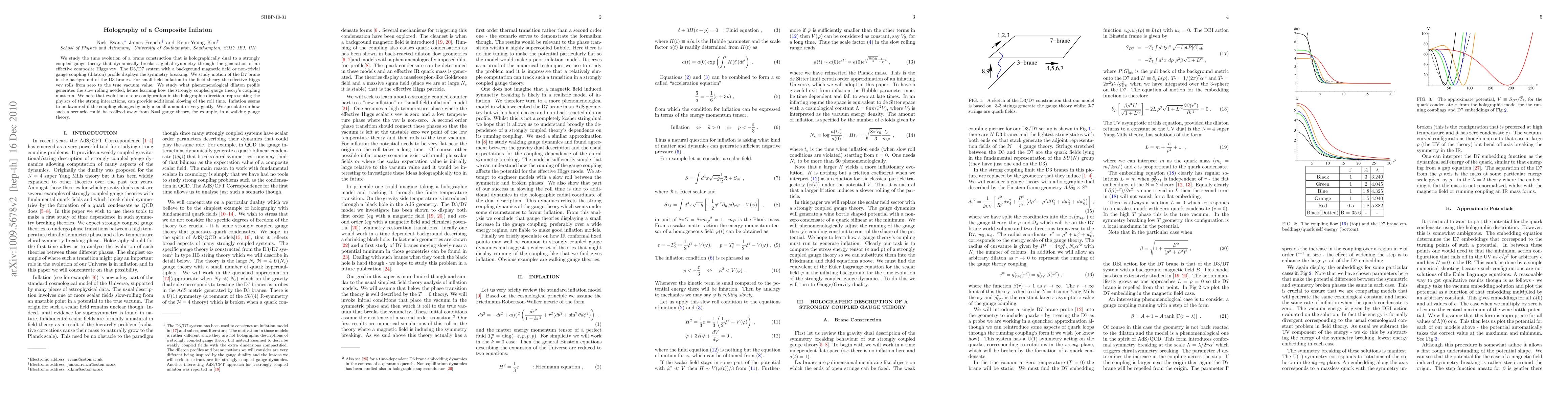 We study the time evolution of a brane construction that is holographically dual to a strongly coupled gauge theory that dynamically breaks a global symmetry through the generation of an effective composite Higgs vev. The D3/D7 system with a background magnetic field or non-trivial gauge coupling (dilaton) profile displays the symmetry breaking. We study motion of the D7 brane in the background of the D3 branes. For small field inflation in the field theory the effective Higgs vev rolls from zero to the true vacuum value. We study what phenomenological dilaton profile generates the slow rolling needed, hence learning how the strongly coupled gauge theory's coupling must run. We note that evolution of our configuration in the holographic direction, representing the phyiscs of the strong interactions, can provide additional slowing of the roll time. Inflation seems to be favoured if the coupling changes by only a small amount or very gently. We speculate on how such a scenario could be realized away from N=4 gauge theory, for example, in a walking gauge theory.