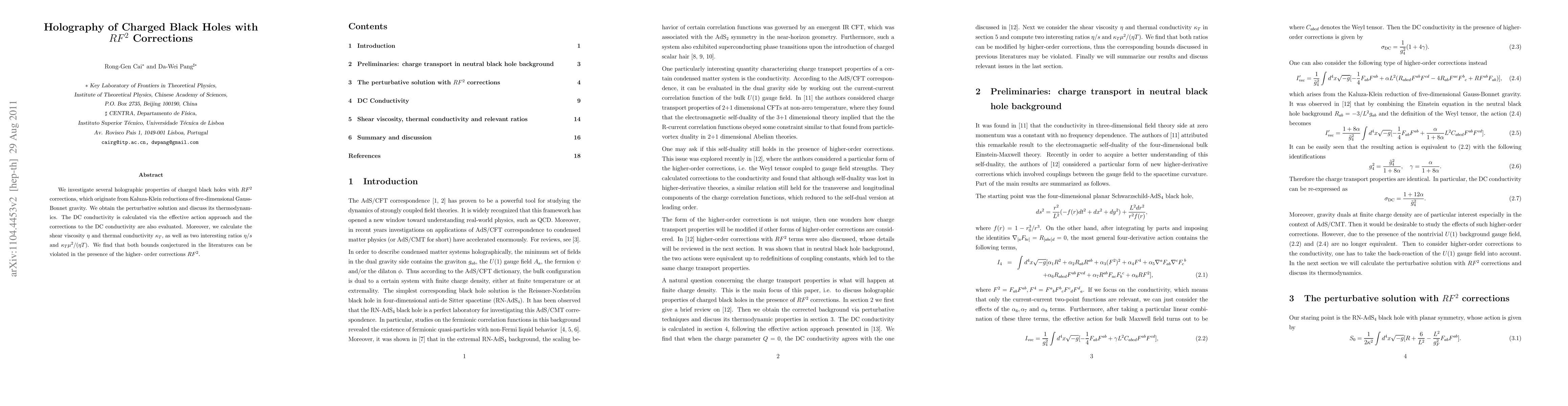 We investigate several holographic properties of charged black holes with $RF^{2}$ corrections, which originate from Kaluza-Klein reductions of five-dimensional Gauss-Bonnet gravity. We obtain the perturbative solution and discuss its thermodynamics. The DC conductivity is calculated via the effective action approach and the corrections to the DC conductivity are also evaluated. Moreover, we calculate the shear viscosity $\eta$ and thermal conductivity $\kappa_{T}$, as well as two interesting ratios $\eta/s$ and $\kappa_{T}\mu^{2}/(\eta T)$. We find that both bounds conjectured in the literatures can be violated in the presence of the higher order corrections $RF^2$.