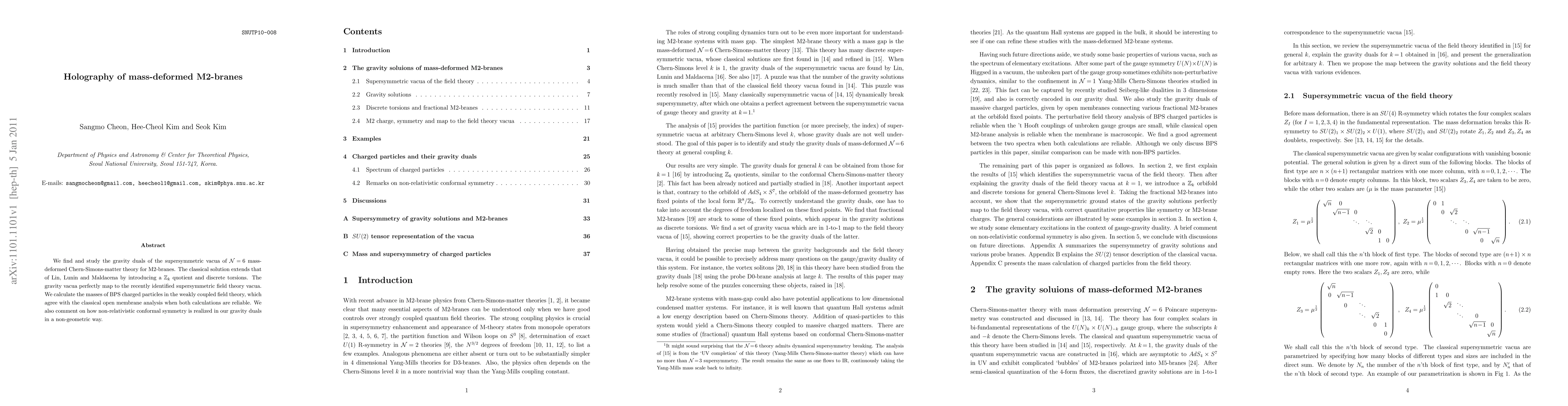 We find and study the gravity duals of the supersymmetric vacua of N=6 mass-deformed Chern-Simons-matter theory for M2-branes. The classical solution extends that of Lin, Lunin and Maldacena by introducing a Z_k quotient and discrete torsions. The gravity vacua perfectly map to the recently identified supersymmetric field theory vacua. We calculate the masses of BPS charged particles in the weakly coupled field theory, which agree with the classical open membrane analysis when both calculations are reliable. We also comment on how non-relativistic conformal symmetry is realized in our gravity duals in a non-geometric way.