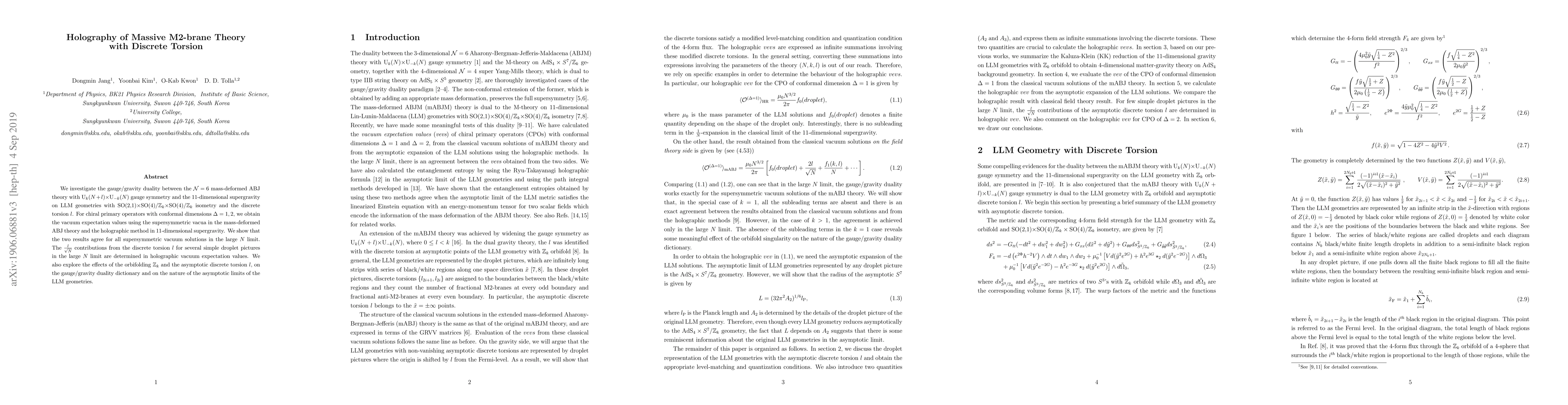 Researchers investigate the connection between a complex mathematical theory called ABJ theory and another area of physics called supergravity, using holography to study vacuum expectation values in 11-dimensional space.