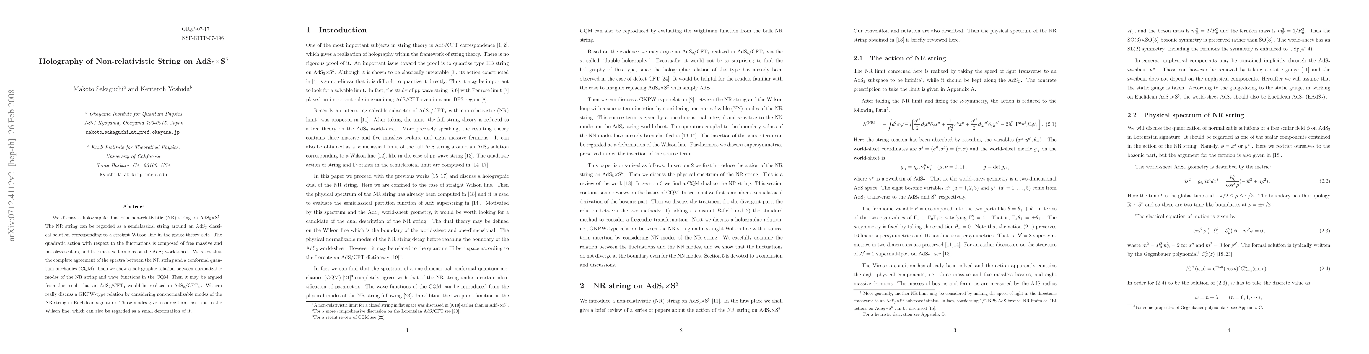 This paper explores the holographic dual of a non-relativistic string on AdS5xS5, demonstrating a correspondence between its spectra and conformal quantum mechanics. It also establishes a holographic relation between the string's modes and wave functions in the conformal quantum mechanics, suggesting an AdS2/CFT1 correspondence in AdS5/CFT4.