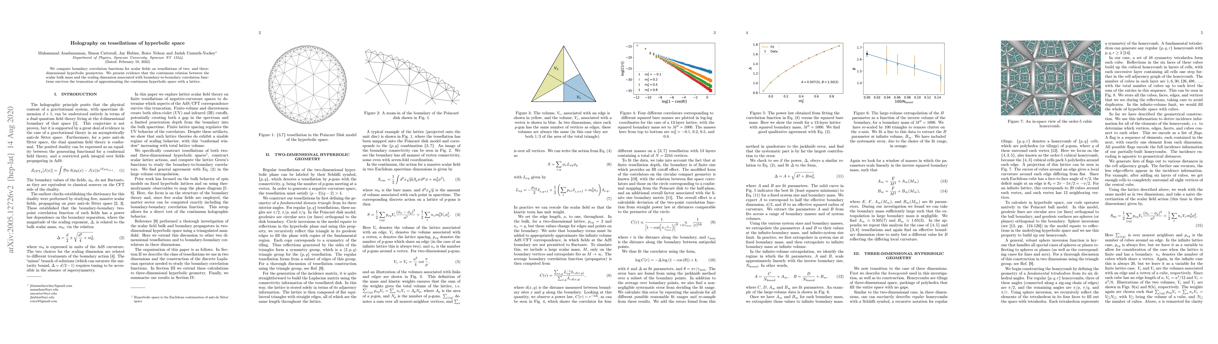 This paper computes boundary correlation functions for scalar fields on tessellations of hyperbolic space, demonstrating that the continuum relation between scalar bulk mass and scaling dimension persists even when approximating hyperbolic space with a lattice.